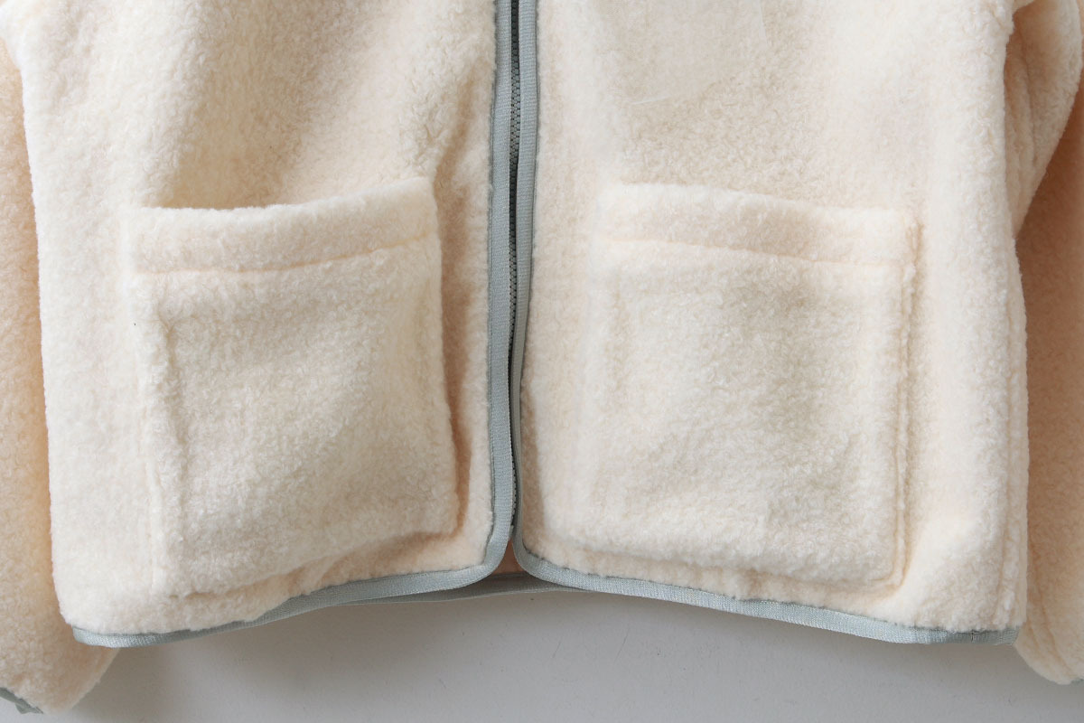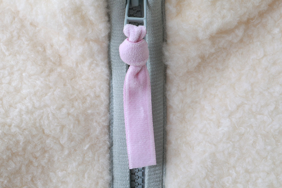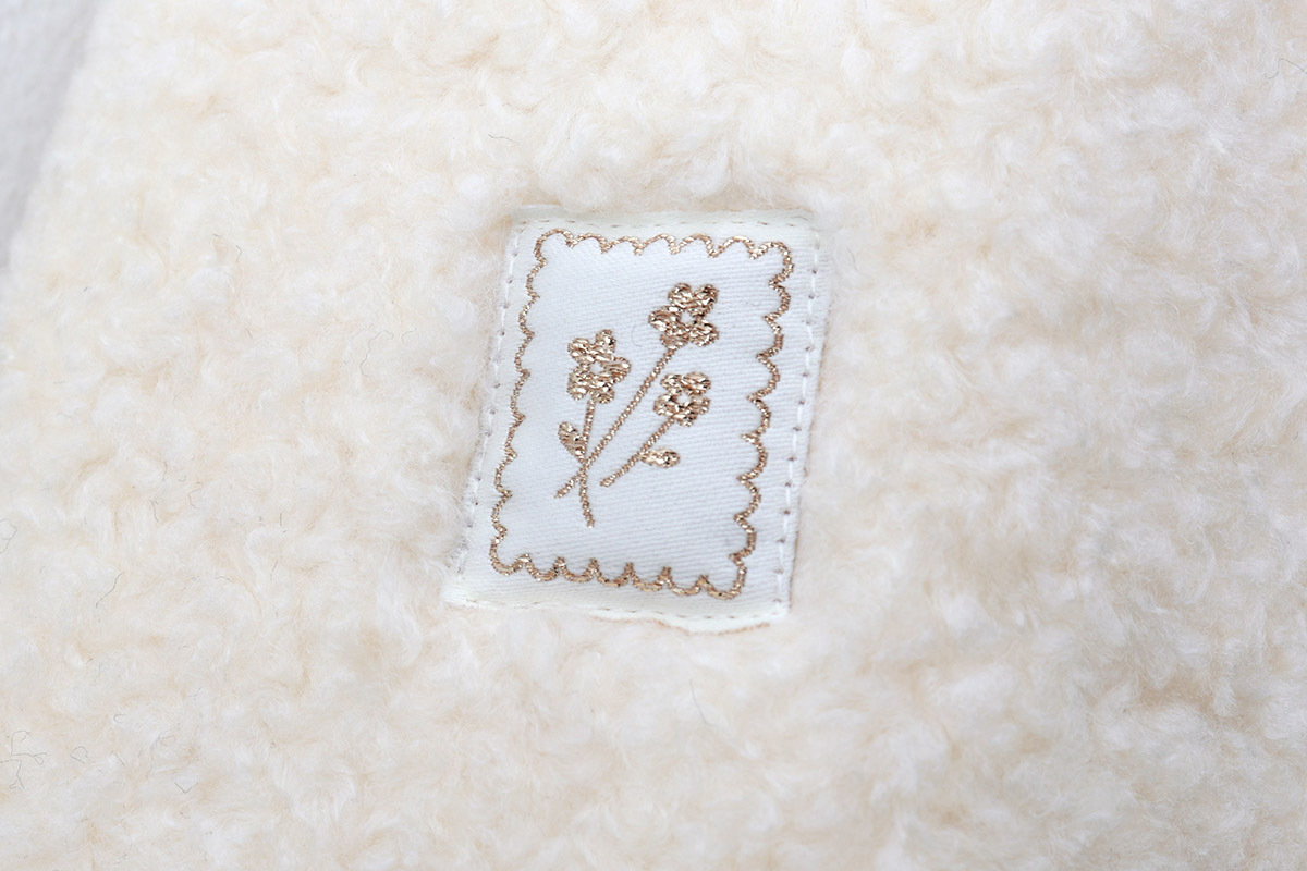 少し巻いた羊を思わせる上等なボアが使用されています。