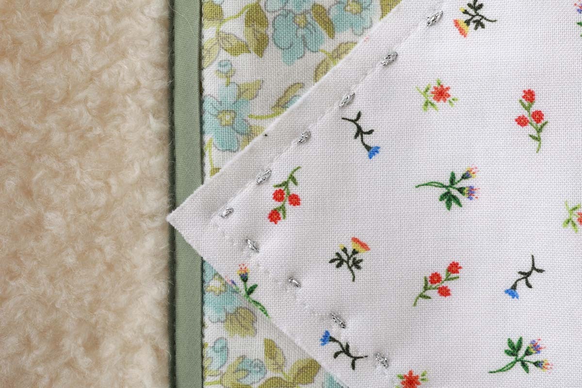 | 素材 | アクリル55% ポリエステル28% 毛17% 裏地/ポリエステル100% キルト/綿100% |