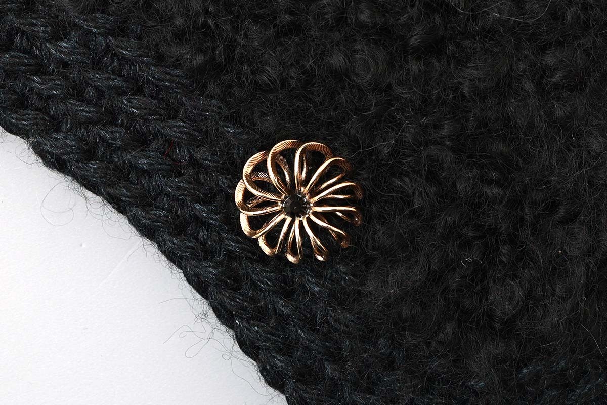 別注!! モヘアループ 耳当て付きニットクロッシェ (BK:花型ボタン)