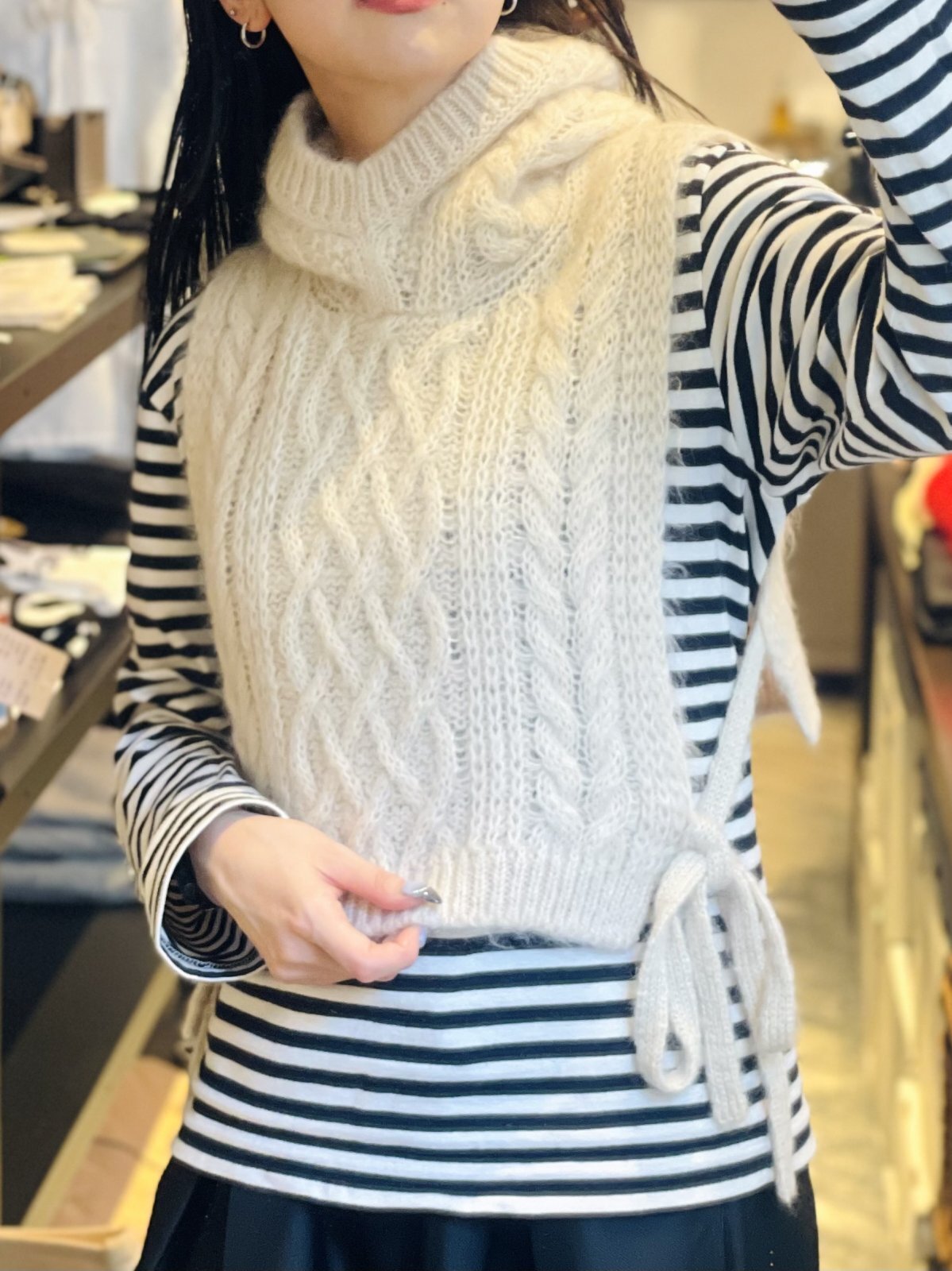 BOTONER モヘヤアラン柄 フード付きベスト (IV) [tao (tricot COMME des GARCONS)]