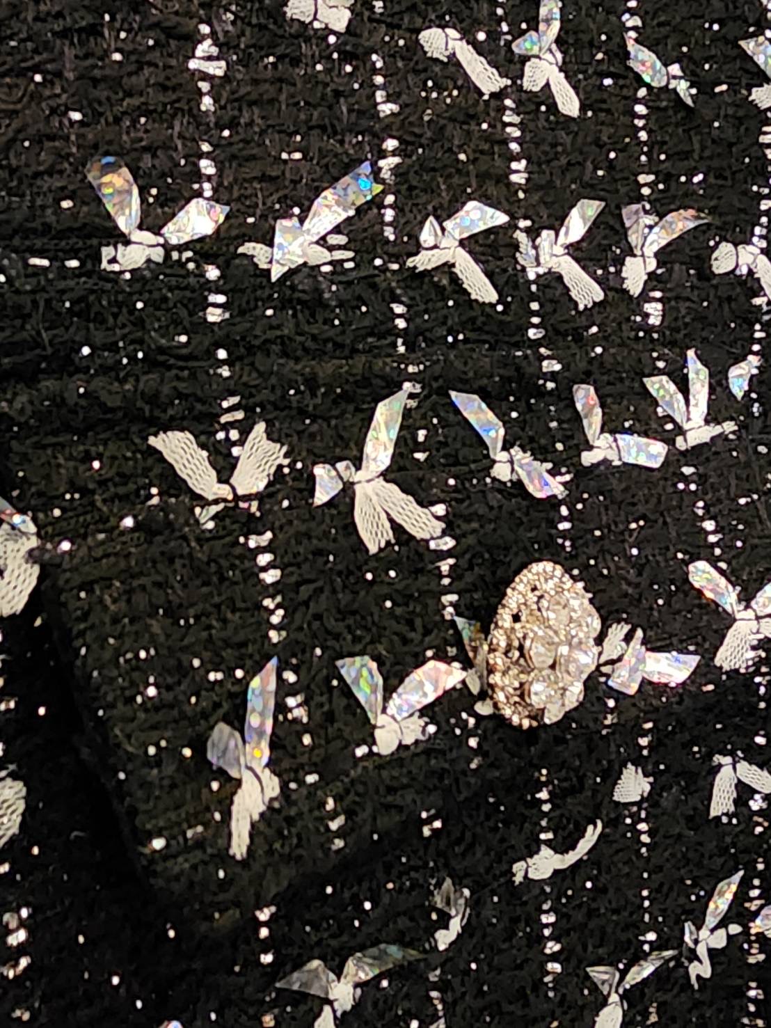 フロントに添えられた4つの飾りポケットのフラップに配されたキラリと煌めくビジューボタンがエレガントな雰囲気に。細部にわたって丁寧な手仕事のぬくもりが感じられます。裾部分は伸縮性に優れたリブ編みで切り替えており、デザイン性に加え動きやすさにも配慮されています。