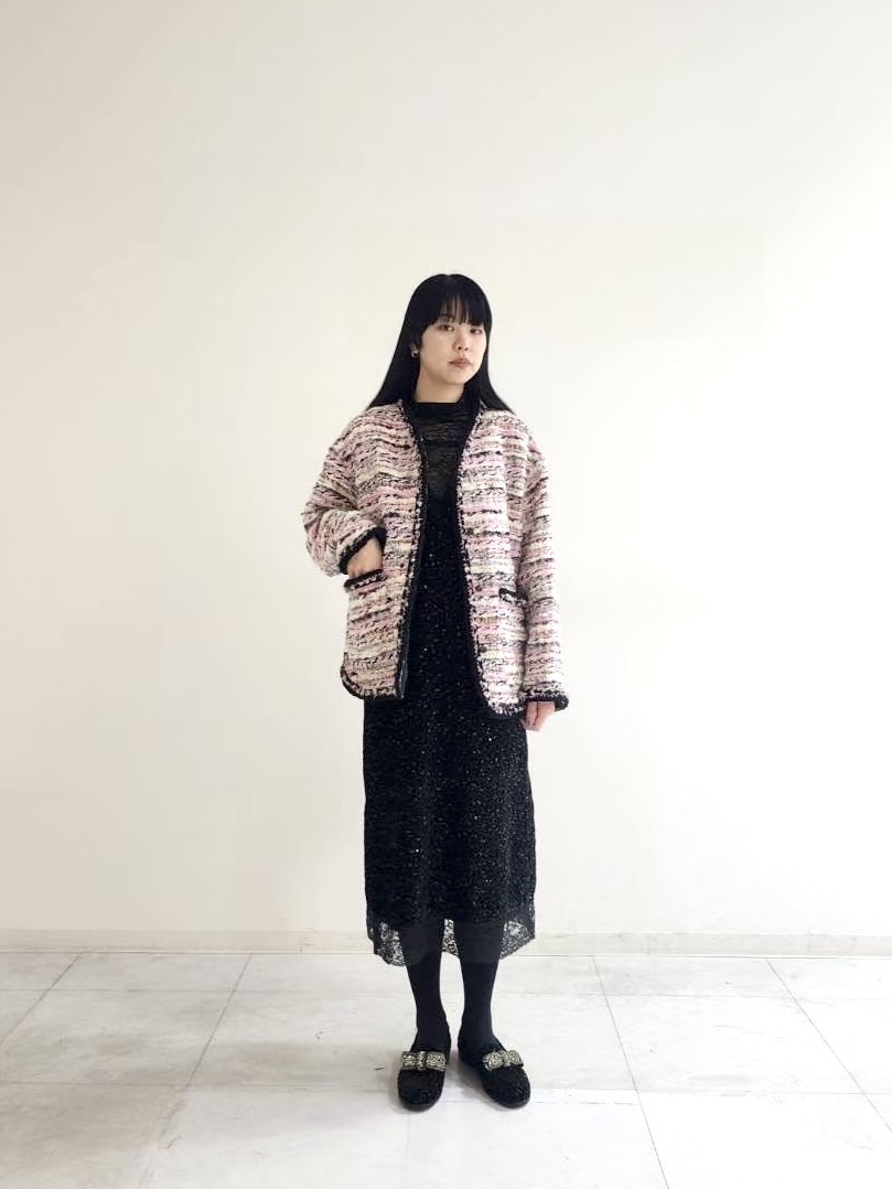 | 素材 | 表地/ポリエステル42% ナイロン22% コットン10% レーヨン10% アセテート7% アクリル7% 麻2% 裏地/キュプラ100% 別布/ポリエステル100% 裾リブ部分/ポリエステル60% 毛40% |