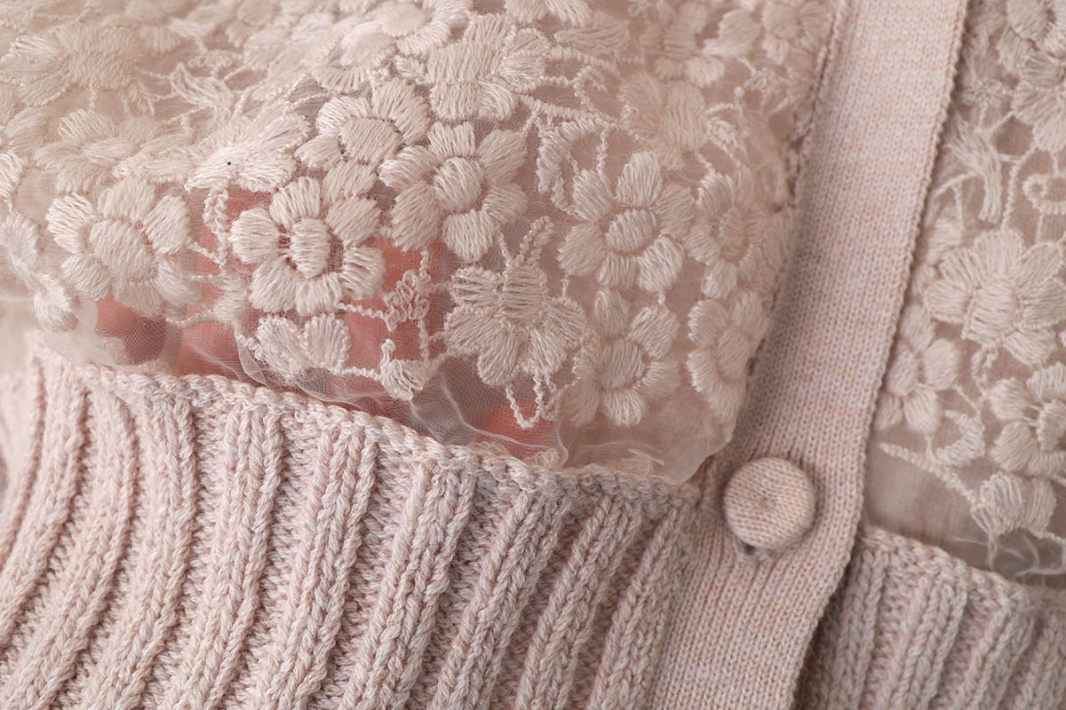 フラワー刺繍が施されたオーガンジーと内側がニットの組み合わせの、カーディガンのようにお召しいただけるブルゾンです。