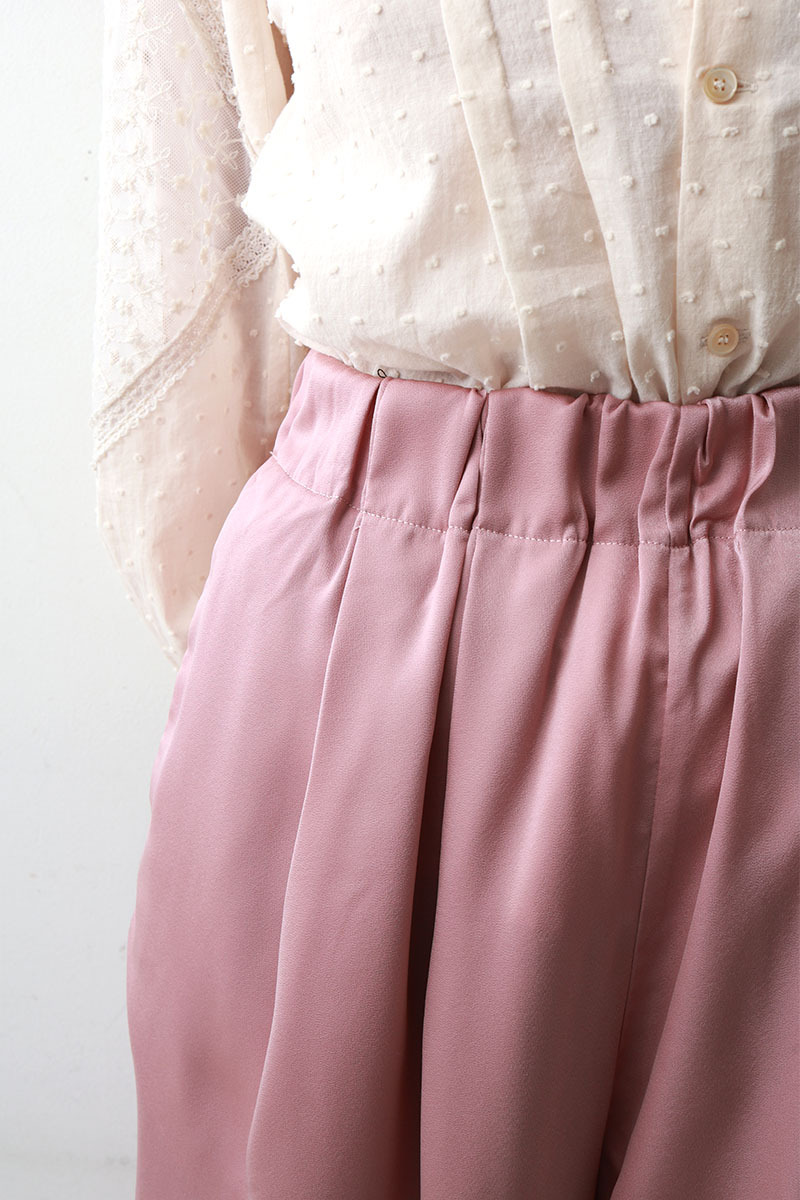 マットなツヤ感の素材に前後にタックをいれふんわりとしたシルエット。