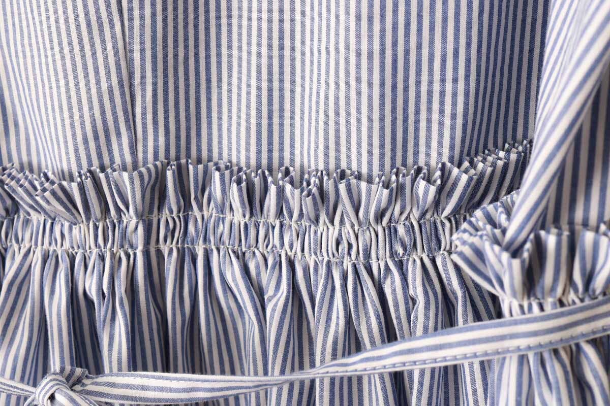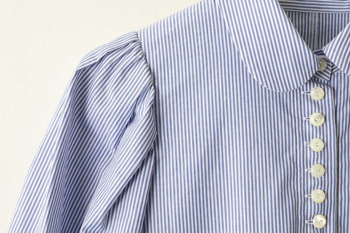 立体感のあるパフスリーブと丸襟が印象的なワンピースです。たっぷりのギャザースカートは空気を含んだように軽やか。ウエスト脇についた共布リボンを絞ることでシルエットを変えて楽しむことができます。