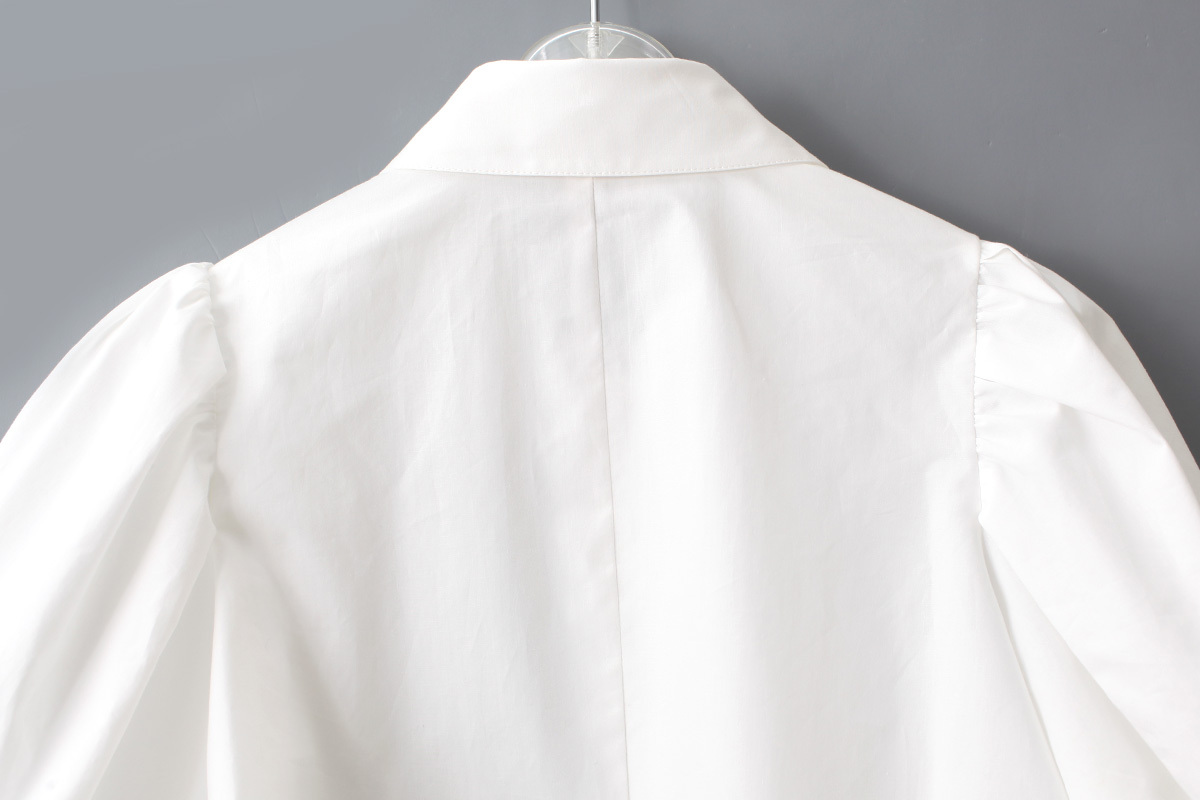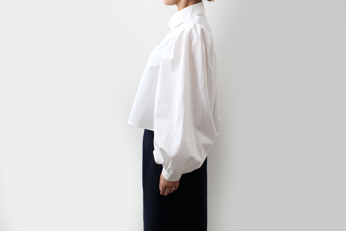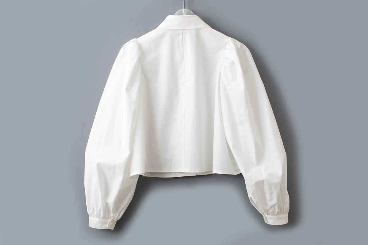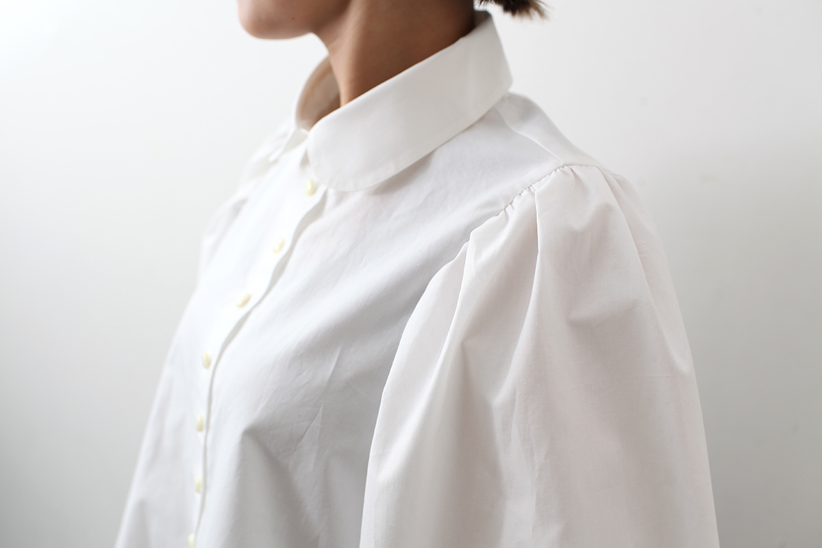 立体感のあるパフスリーブと丸襟が印象的。
