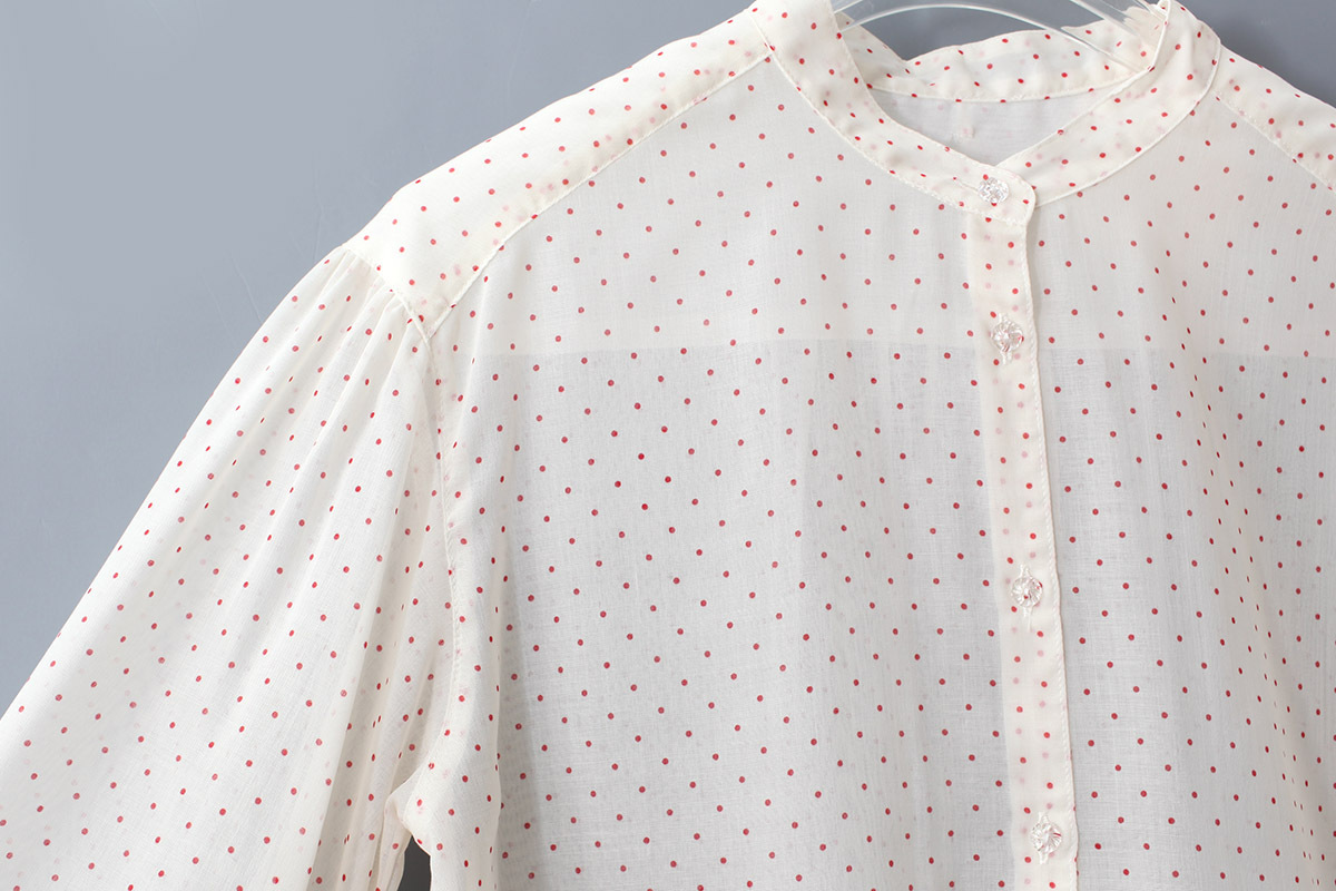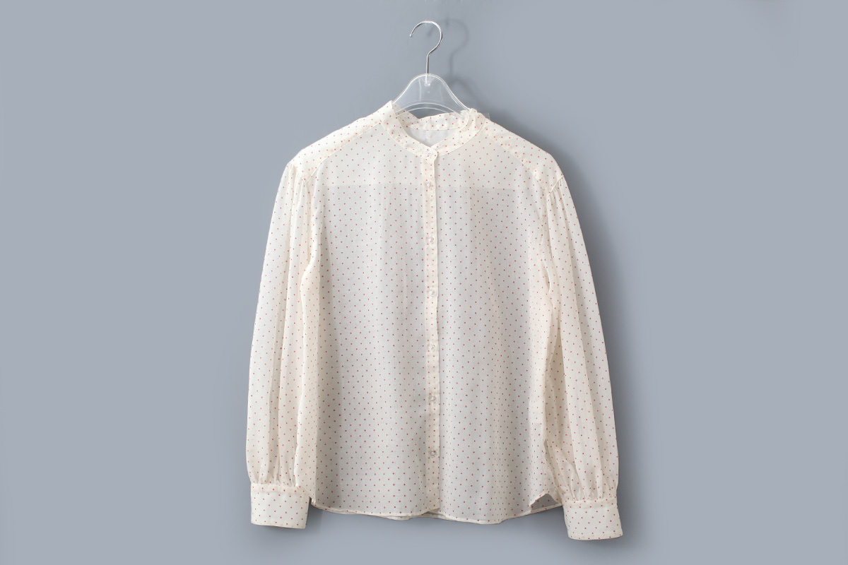 シアーな生地に細かいドットプリントを施した、どこか懐かしさを感じるありそうでないオリジナルテキスタイルです。