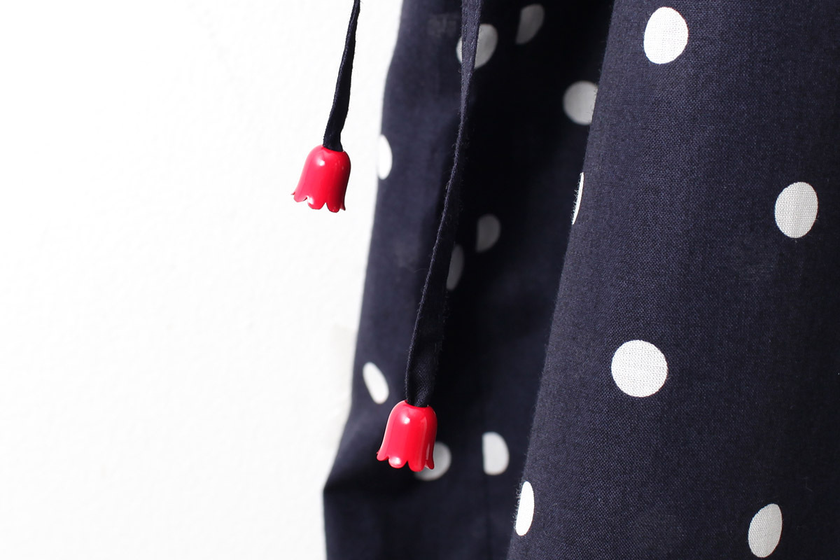 ウエスト脇のコードで気分に合わせてサイズを調節できます。