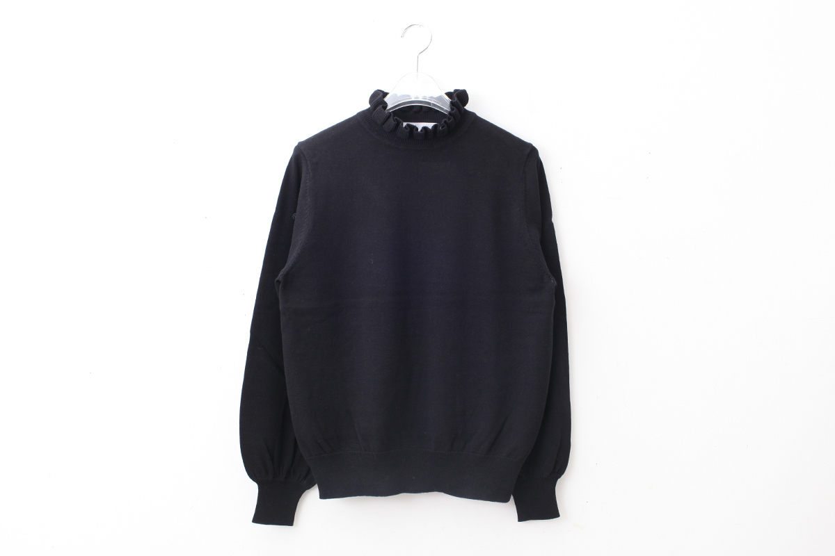 shop別注!! 32/2強撚綿フリル衿長袖プルオーバー (BK)