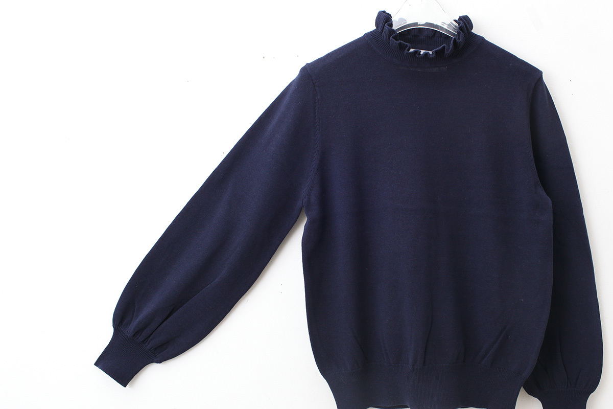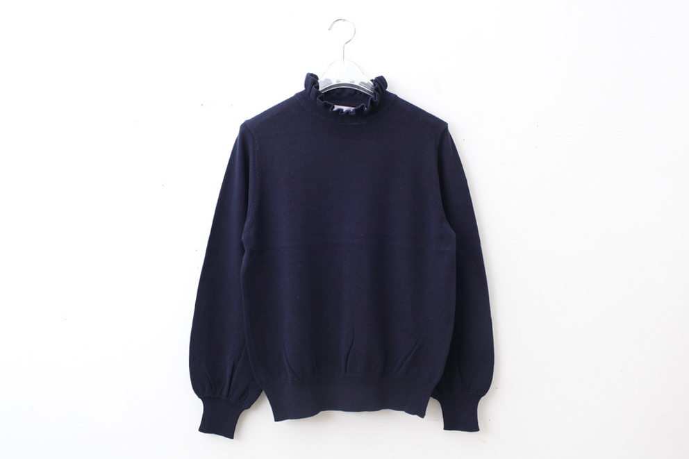 - > shop別注!! 32/2強撚綿フリル衿長袖プルオーバー (NV)