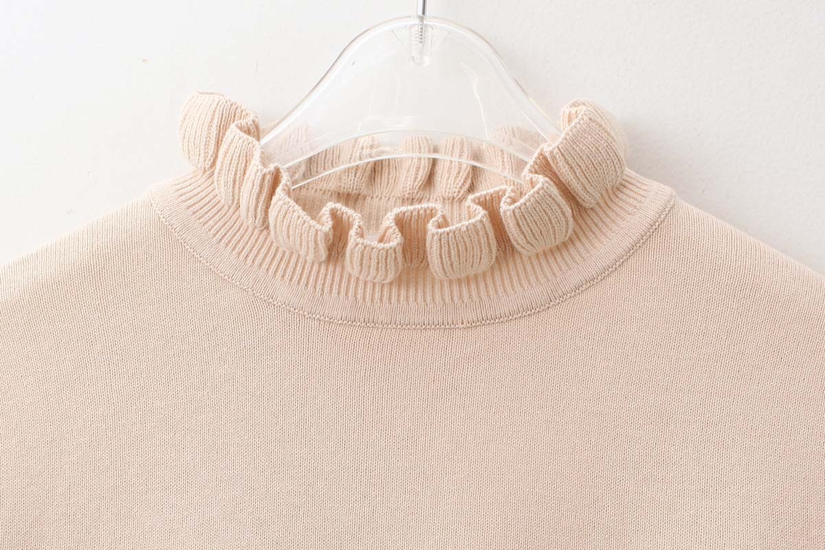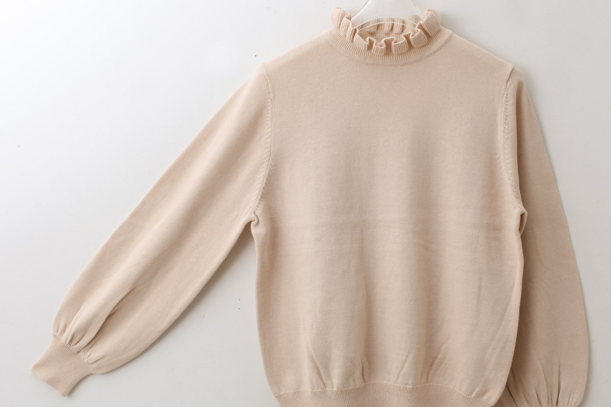 首元のフリルと袖口のポワンとしたパフがポイント。
