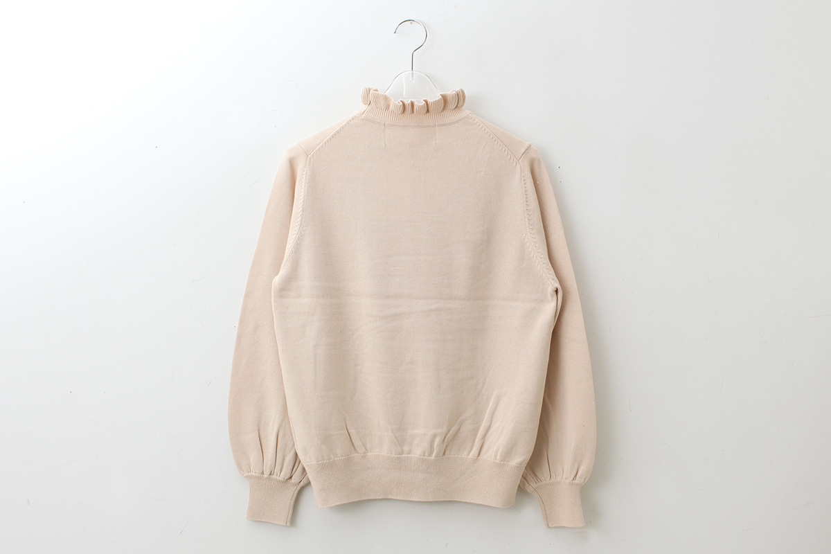 shop別注!! 32/2強撚綿フリル衿長袖プルオーバー (BG)