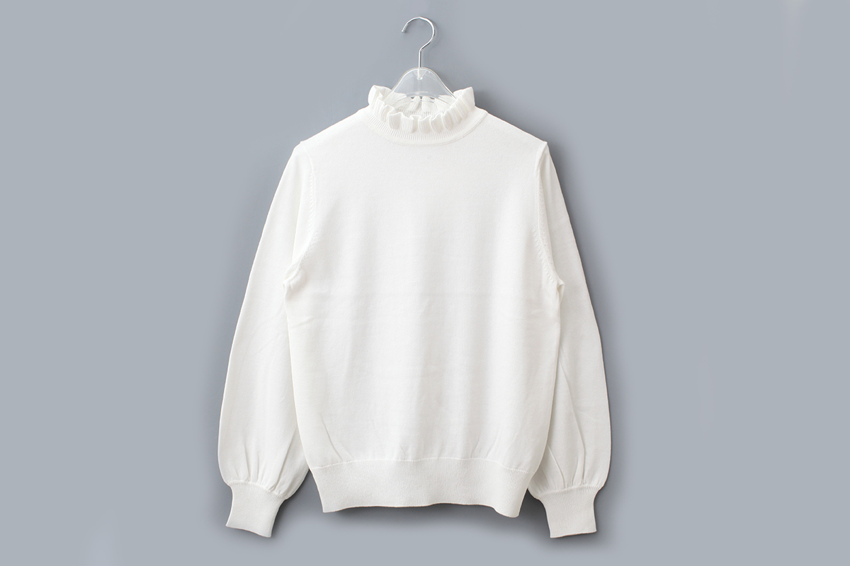 - > shop別注!! 32/2強撚綿フリル衿長袖プルオーバー (WH)