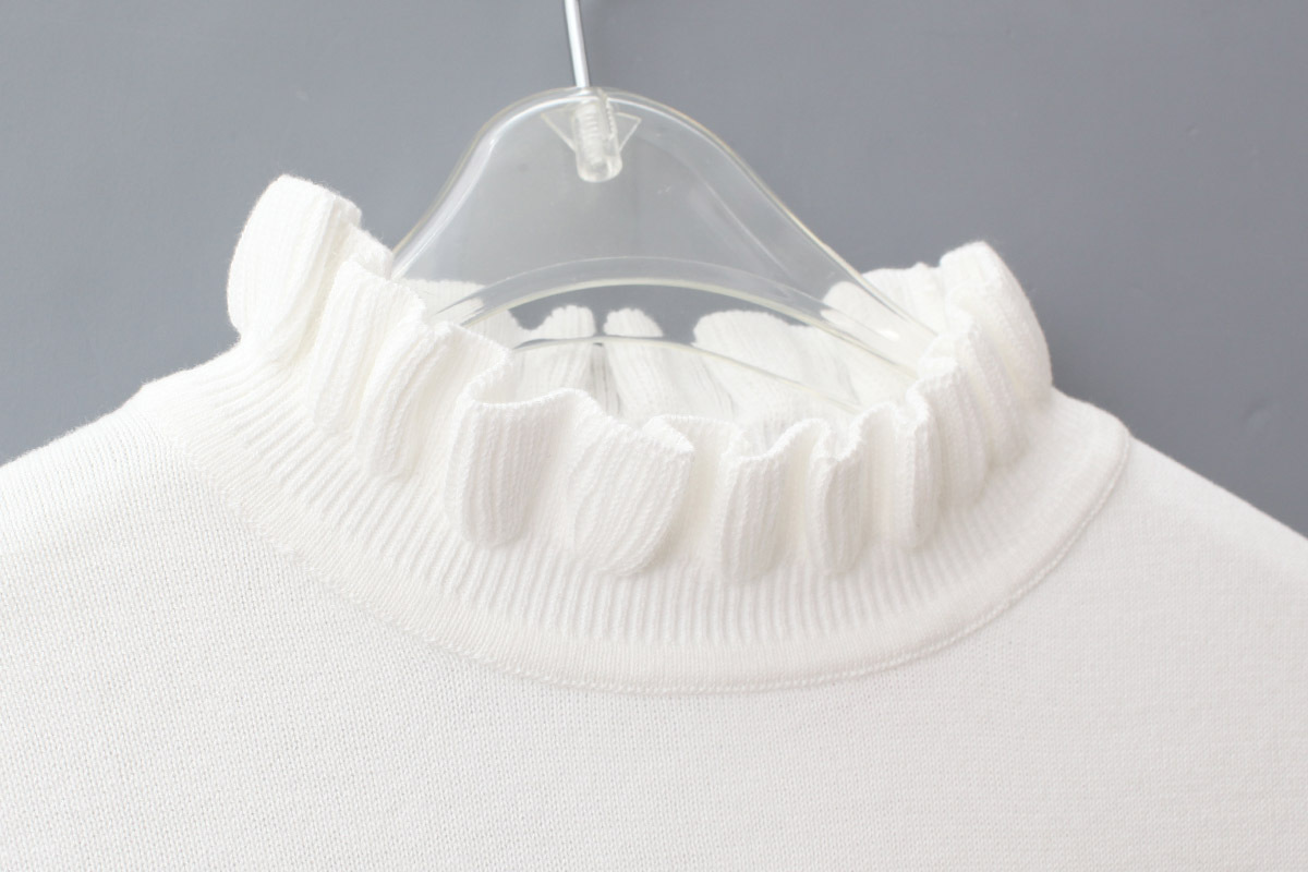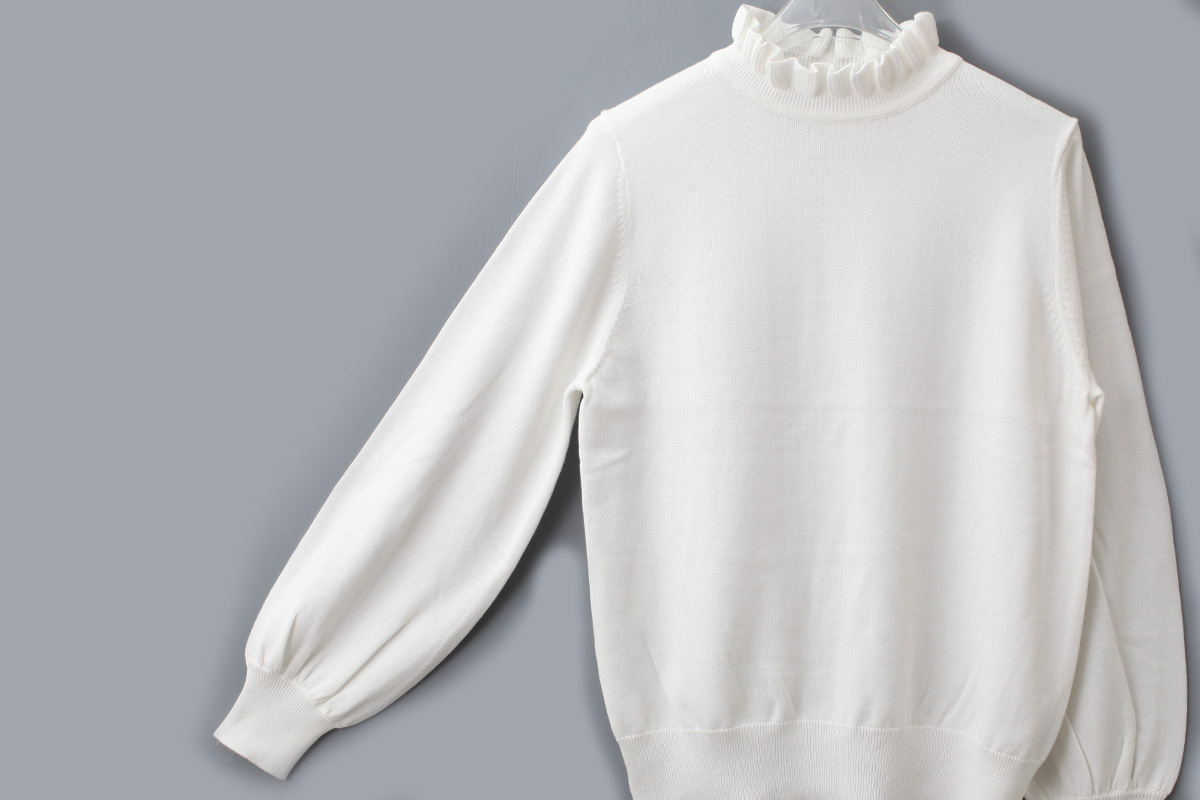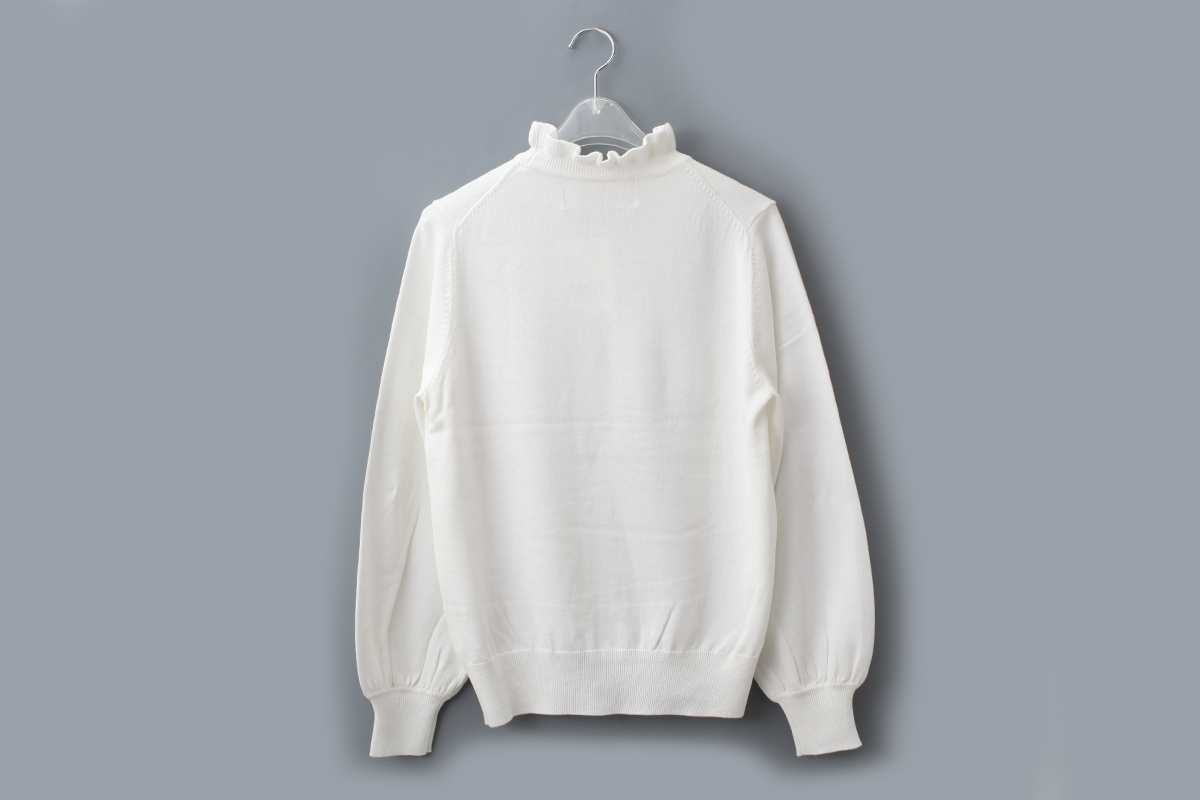 shop別注!! 32/2強撚綿フリル衿長袖プルオーバー (WH)