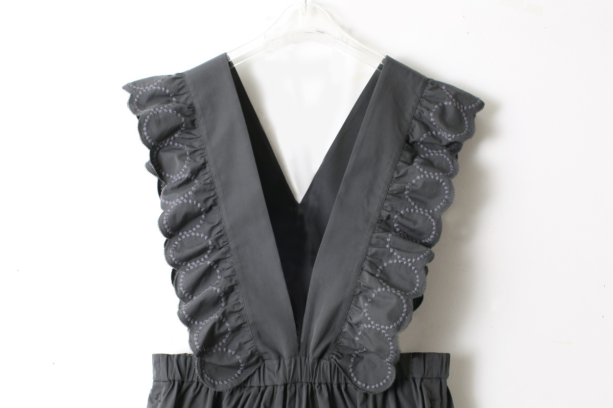 | 商品説明 | 小さな粒の連なりで表現された“tambourine(タンバリン)”。人の手の跡を消さないように表現した不揃いの粒は、不完全なものの美しさや、それぞれの個性をあらわしています。細番手のコットン糸を贅沢に使い、経糸は強撚、緯糸は引き揃えで高密度に織り上げられたサロペットは、刺繍のモチーフをレースのように配した繊細なデザイン。穏やかな艶とやわらかな質感で、動きに合わせて豊かな表情を見せてくれる一着です。 |