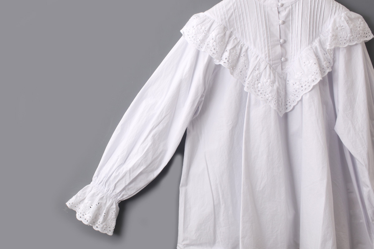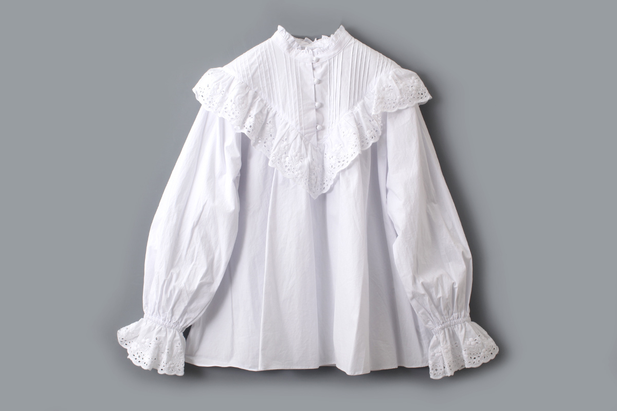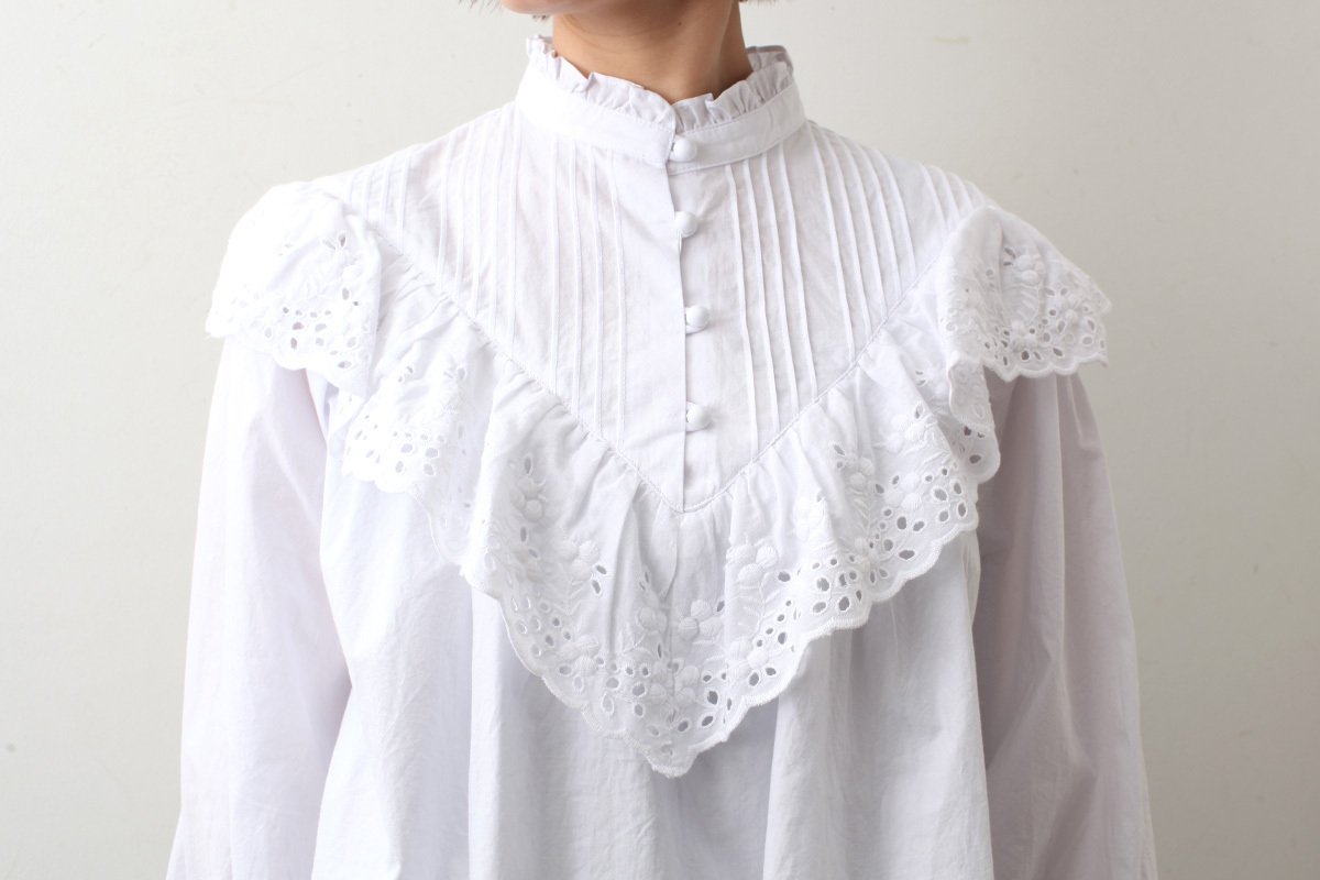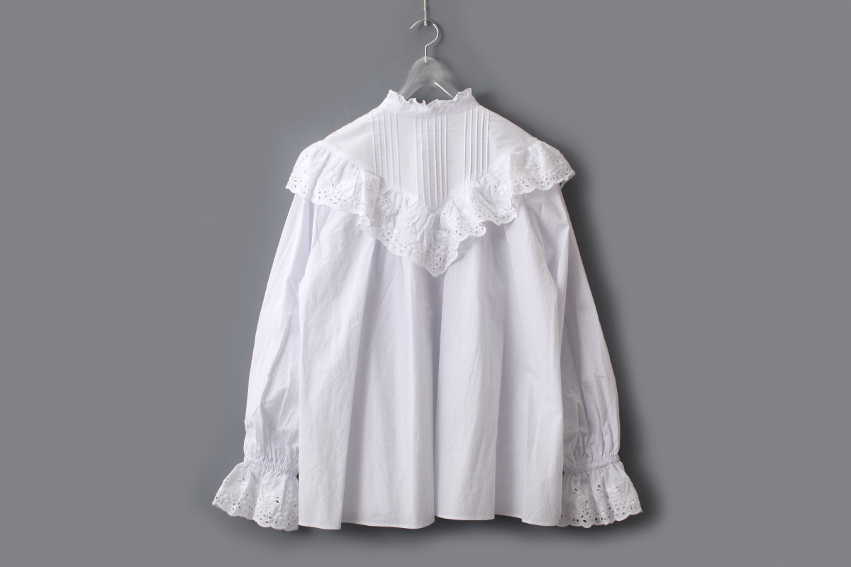 - > 別注!! スタンドカラーレースブラウス (WH)