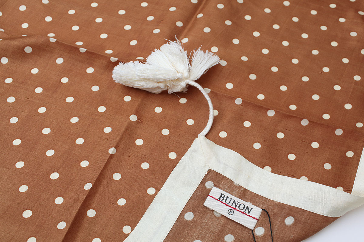 Khadi Silk Polka dots Print Tassel Scarf (BR) [BUNON]