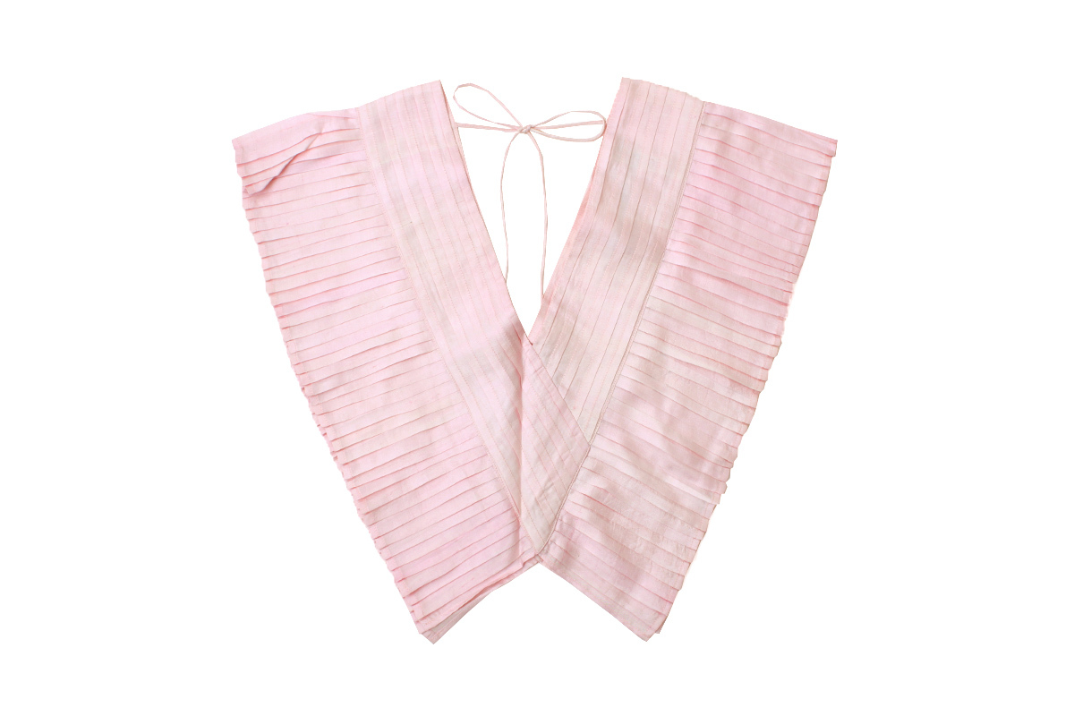 機織りを意味する「BUNON」。シルク生地を作っている村の一つ、ソムナキ村では女性が糸を手で紡ぎ、男性が手織りする、1300年変わらない作り方を守っています。インド国内でも貴重になった本物のカディと人の手によるものづくりを、モダンで洗練されたデザインとの融合を目指して。繊細なプリーツが特徴の付け襟です。いつものお洋服に着けるだけで、コーディネートに新鮮さを加えてくれます。付属の紐は、前後どちらでも合わせて頂けます。
