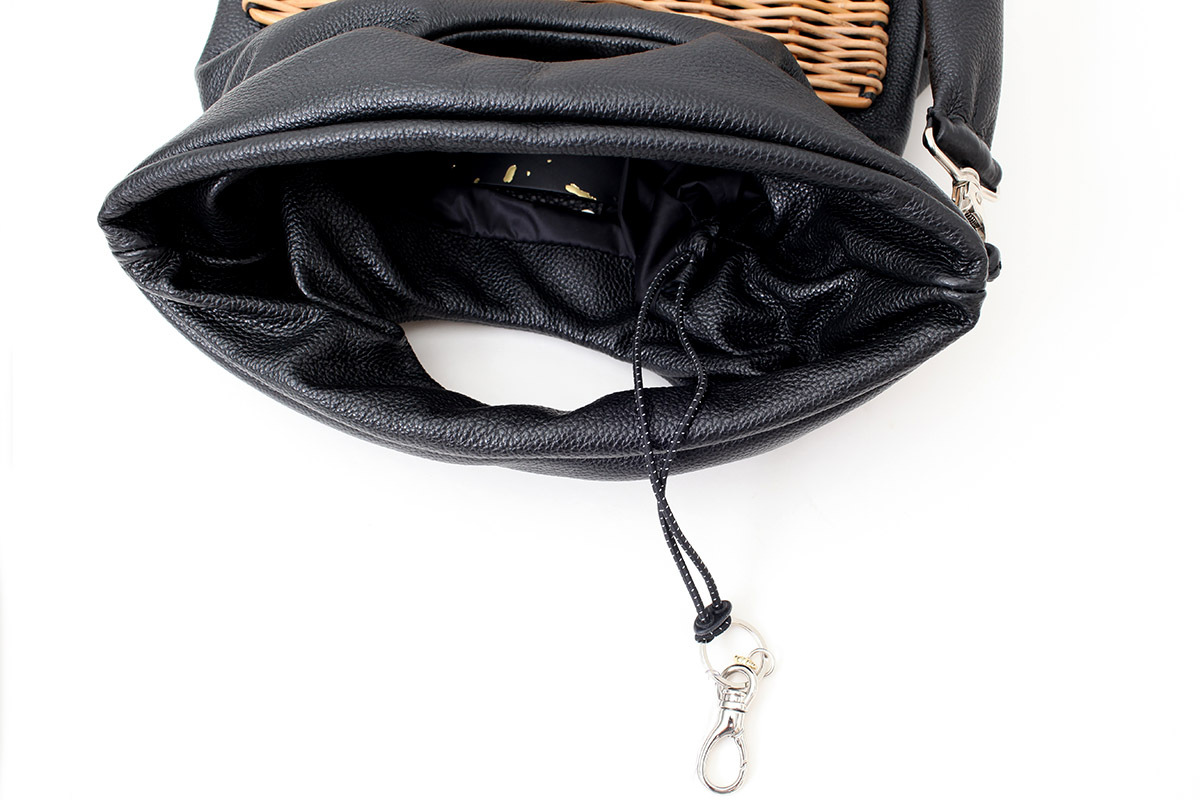 かごには裏がついていないので、スマホ等を入れた際に傷つかないようにさらに革のポケットがつけられています。