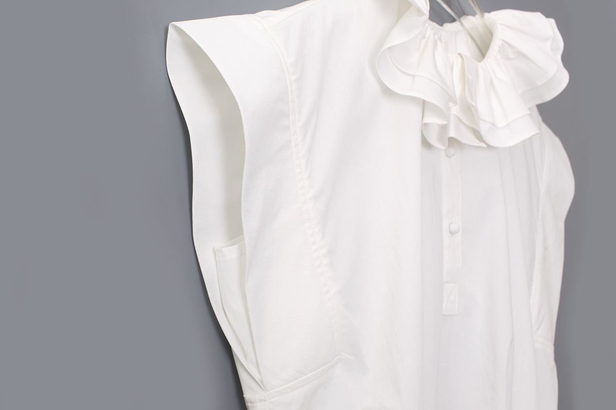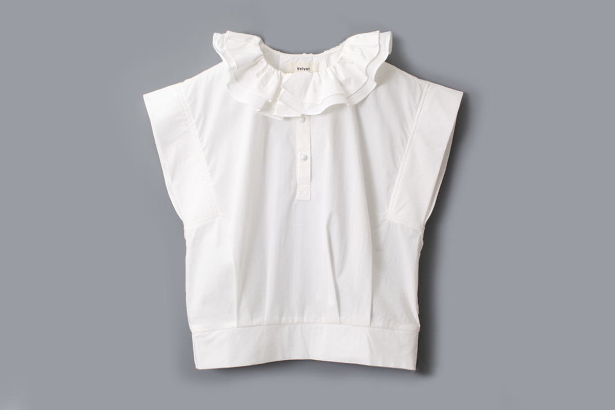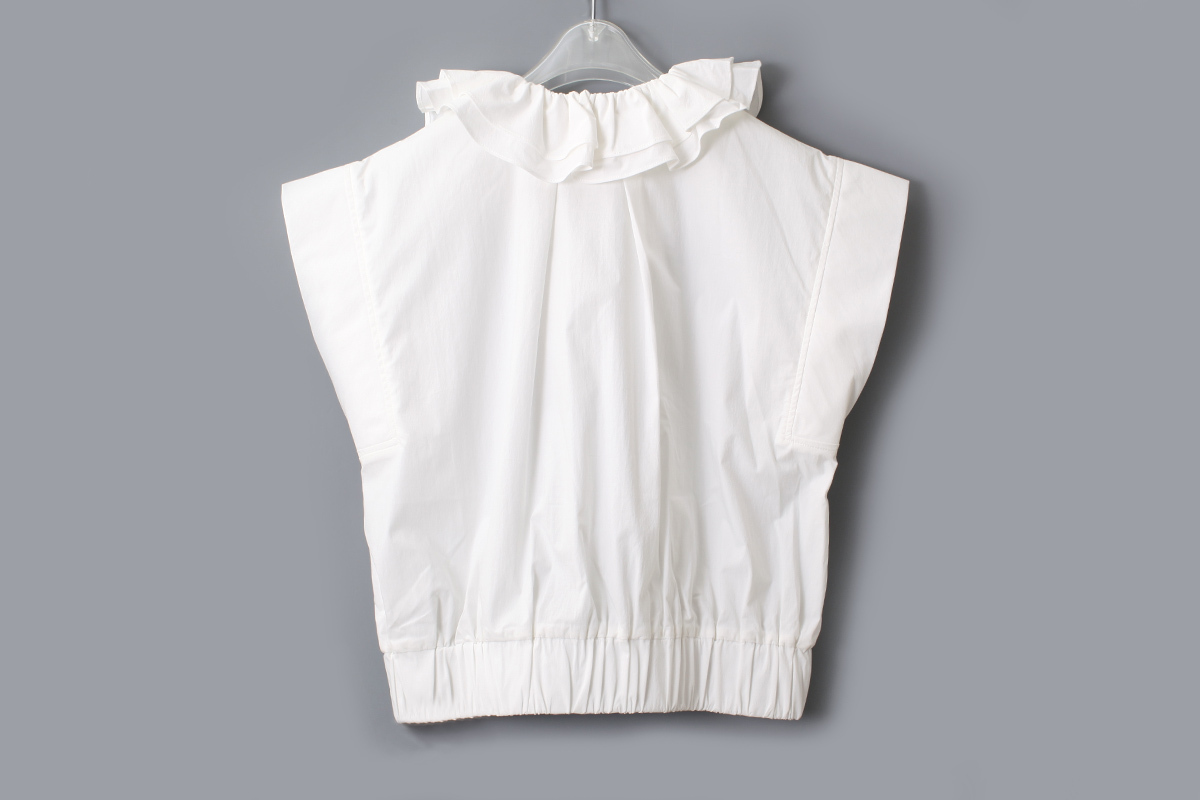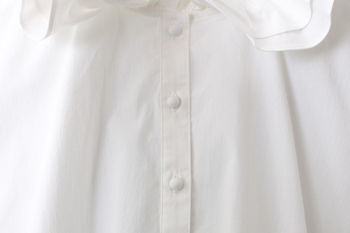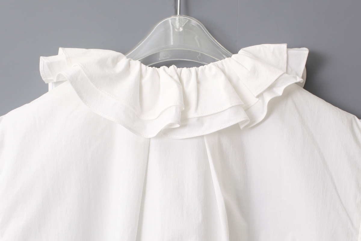 ラッフルカラーがかわいいブラウス。