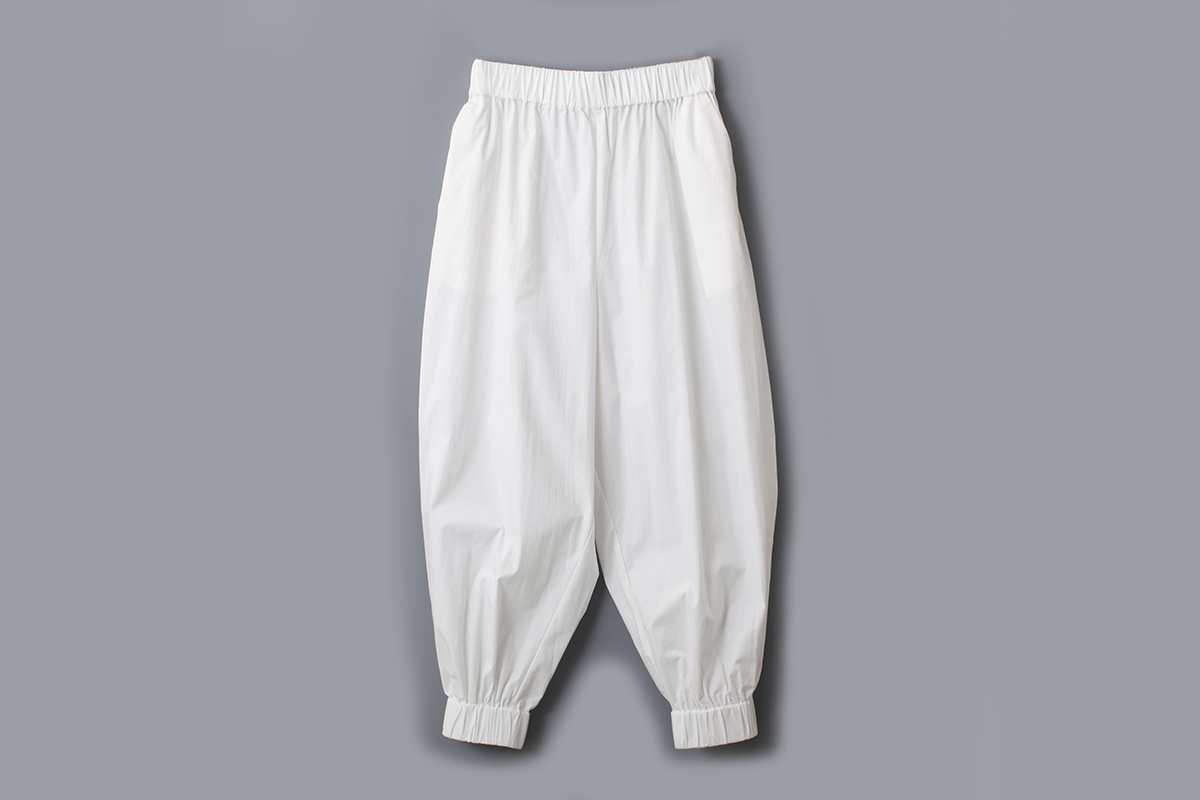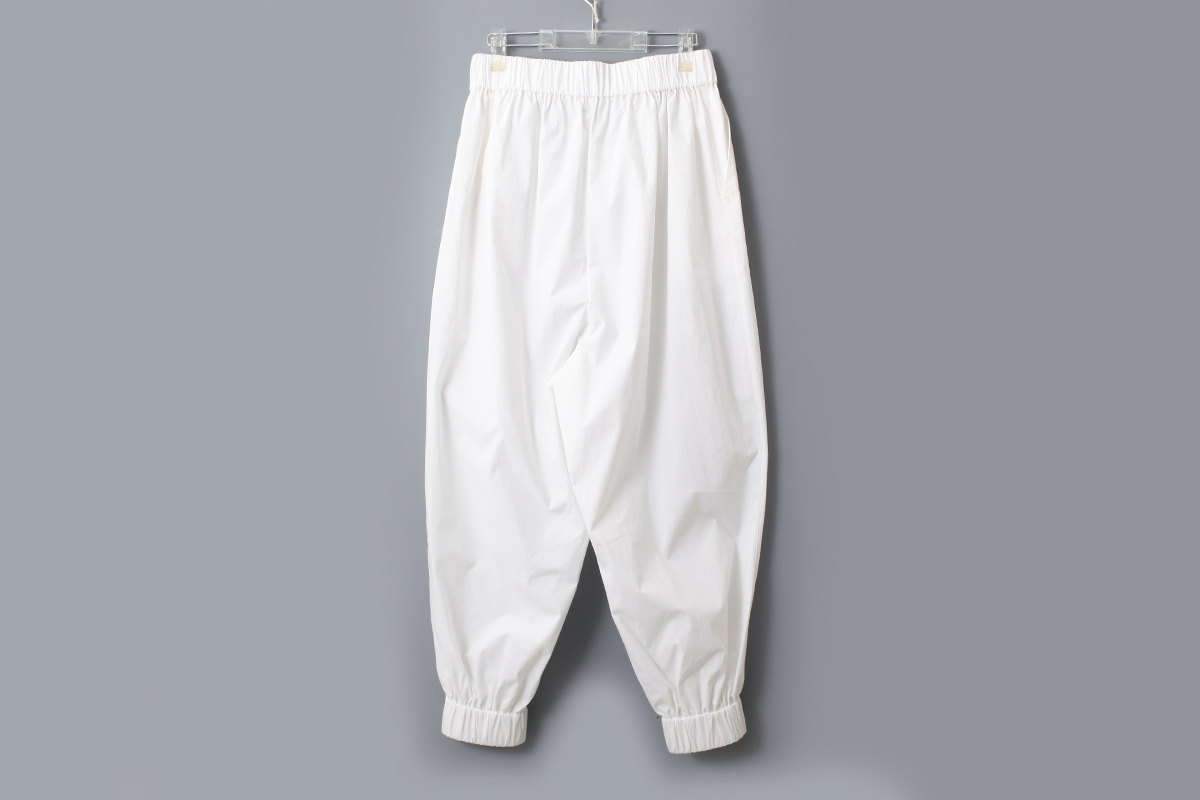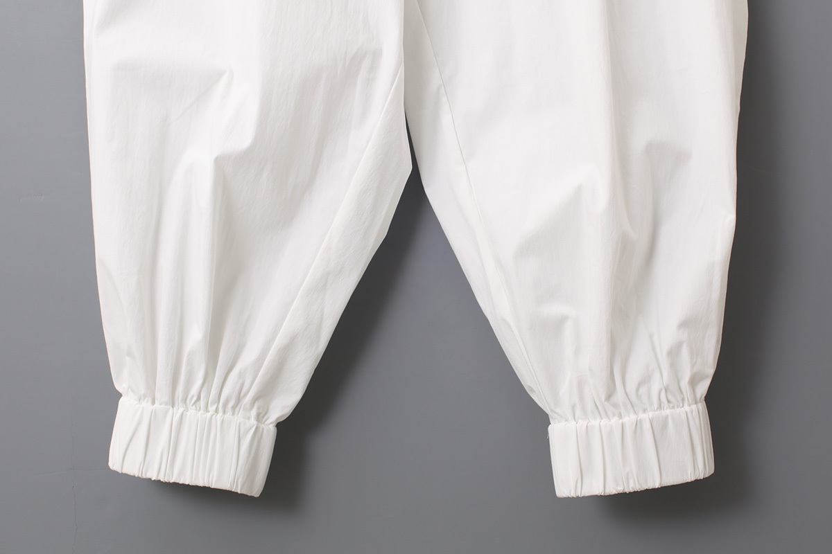 きゅっと締まった裾が特徴的なパンツ。ストレッチが効いているので、動きやすく着心地の良い一着です。そのままブラウスやTシャツと合わせていただくのはもちろん、ワンピースの下に重ねたり、同じシリーズのブラウスやエプロンとコーディネートするのもおすすめ。さまざまな着こなしでお楽しみいただけるアイテムです。