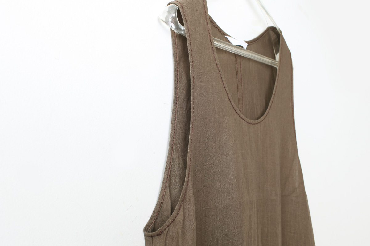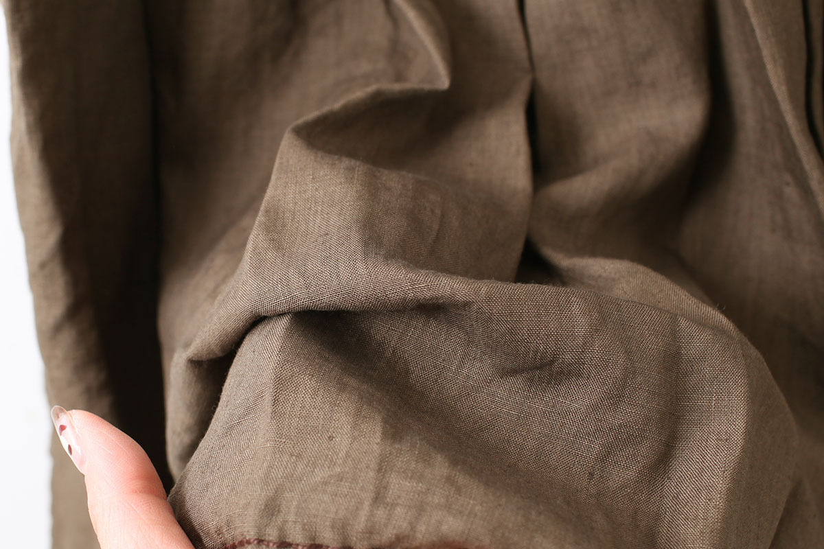 リネン本来の張り感と、くたっとした柔らかさが程よい素材のワンピース。