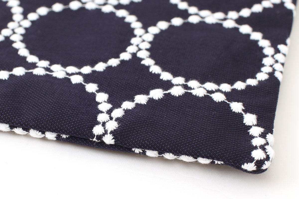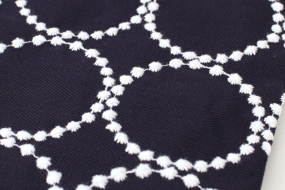 | 素材 | 表生地/綿100% 刺繍部分/上糸 綿100% 下糸 ポリエステル100% 裏生地/ポリエステル100% |
