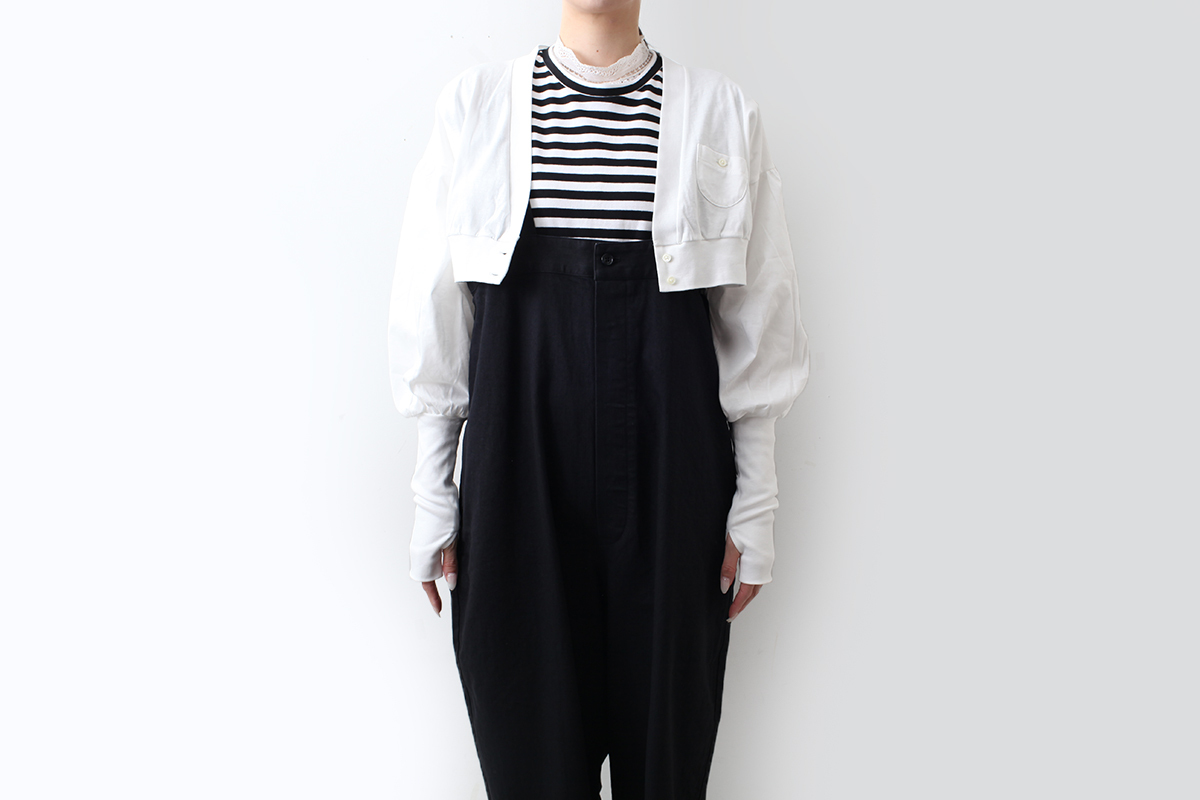 ボレロ型なのでワンピースやオールインワンに羽織るコーディネートもおすすめです。