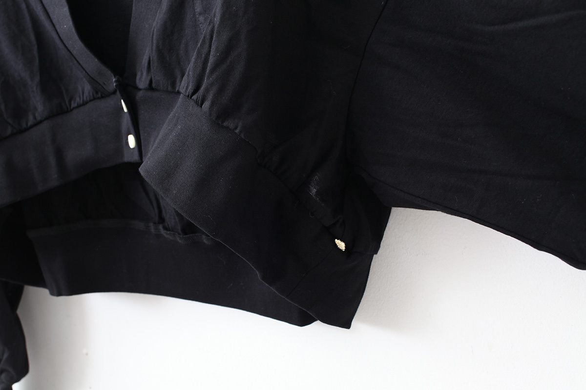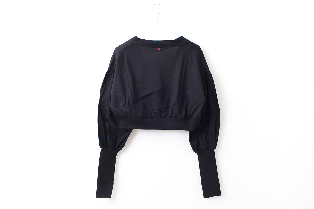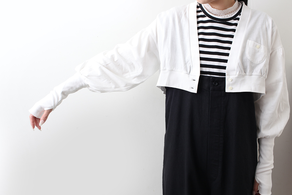 袖口のリブが長くサムホール付きの遊び心あるデザインです。
