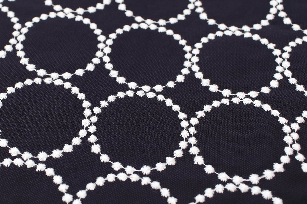 | 素材 | 表生地/綿100% 刺繍部分/上糸 綿100% 下糸 ポリエステル100% 裏生地/ポリエステル100% |