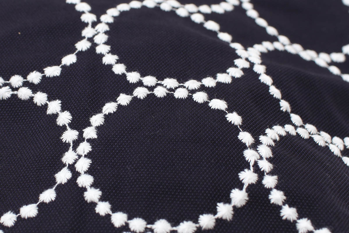 | 素材 | 表生地/綿100% 刺繍部分/上糸 綿100% 下糸 ポリエステル100% 裏生地/ポリエステル100% |
