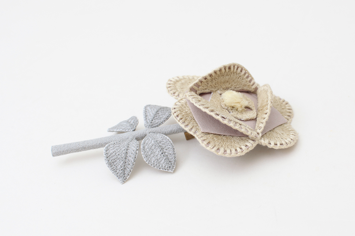 | 商品説明 | フィンランド語でバラを意味する“ruusu(ルース)”と名付けたテキスタイル。花びらが重なる様子を、図形を並べるようにミニマルなラインで描いたモチーフです。テキスタイルの刺繍表現を立体で組み立て、一輪のコサージュに仕立てました。やわらかく立ち上がる花びらの表情や、刺繍ならではの繊細な陰影が、静かな美しさを引き立てます。 |