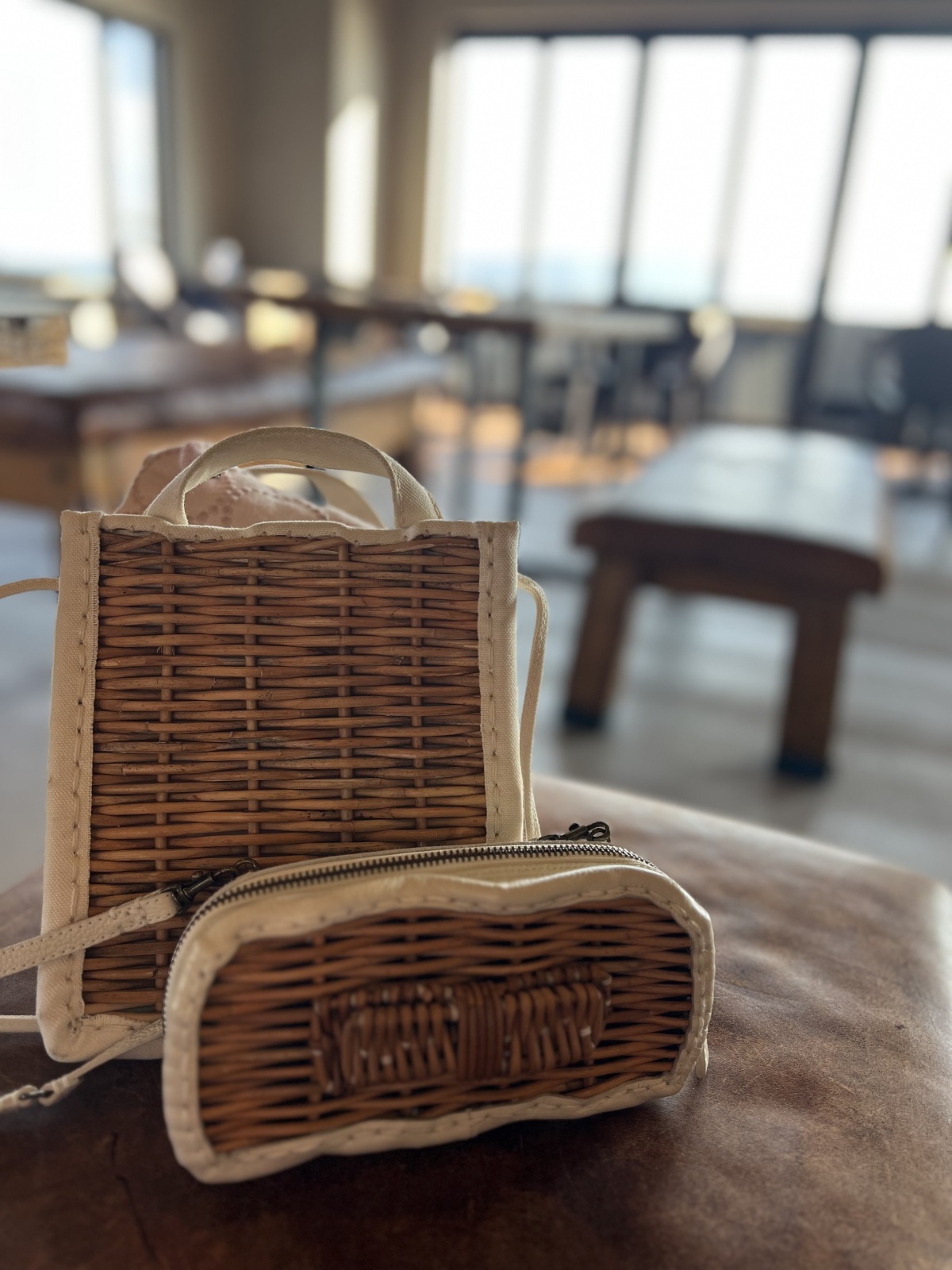 商品説明 | 綿100%防水キャンバスと紅籐の組み合わせの、紙袋のような形のかごバッグ。コーディネートに取り入れやすいシンプルなデザイン。ポシェットタイプのかわいいバッグ。肩掛けヒモは調節可能です。eb.a.gosのショルダーソフト長財布が縦にも、横にも収まるサイズです。 |