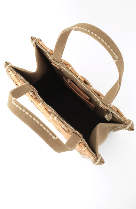 | 商品説明 | 綿100%防水キャンバスと紅籐の組み合わせの、紙袋のような形のかごバッグ。コーディネートに取り入れやすいシンプルなデザイン。500mlペットボトルが縦に入ります。シンプルなのでチャームなどでアレンジして楽しめます。 |