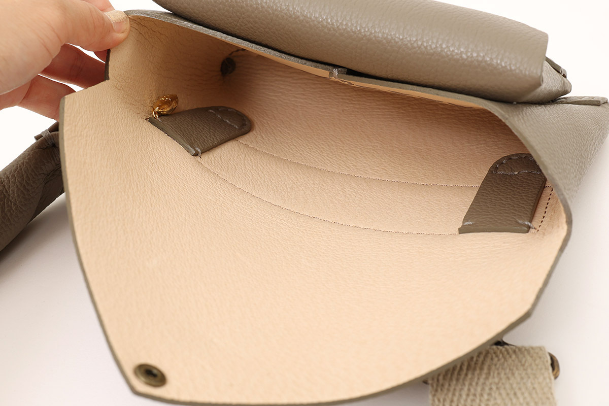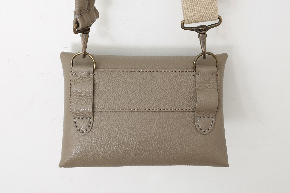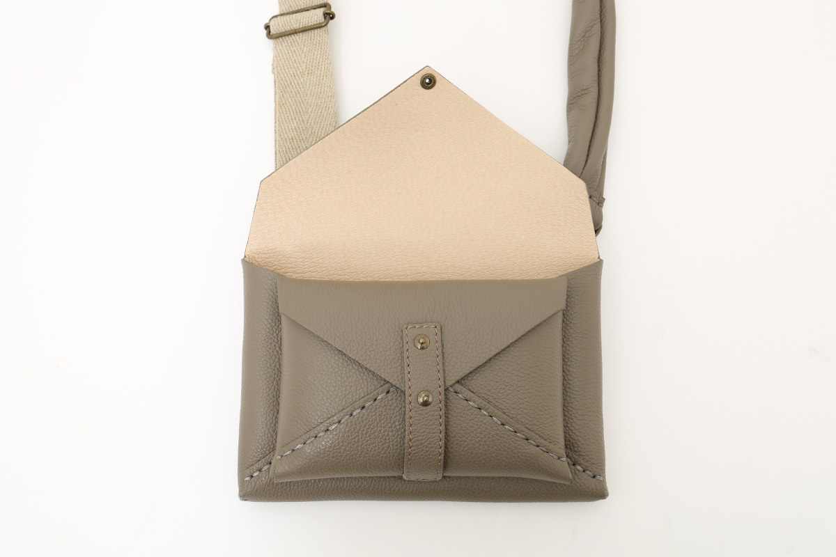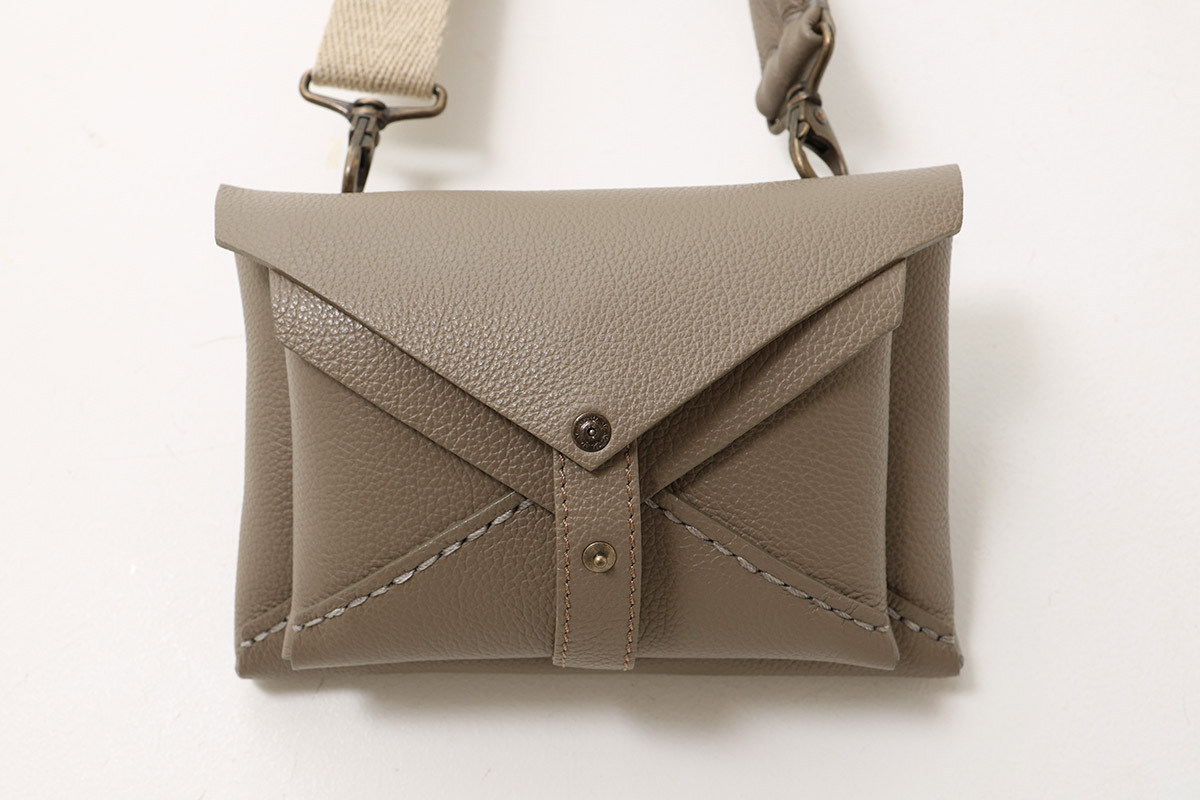 | 商品説明 | 厚みとコシがありながらもフニャフニャした感触が特徴のシュリンク・エンボスレザー。渋革ではなくクロムなめしでしか出来ない仕上がりのもので、1958年より創業しているイタリアのタンナーであるLWG(Leather working group)から最高ランクのゴールドを認証されるほど環境保全、品質に配慮された環境で作られています。発色の良い色が出て、傷や色落ちを気にせず使える勝手の良さも魅力です。封筒型のポーチが2つくっついたデザインのショルダーバッグ。ボディバッグ、クラッチバッグ、ウエストポーチの3wayになります。 |