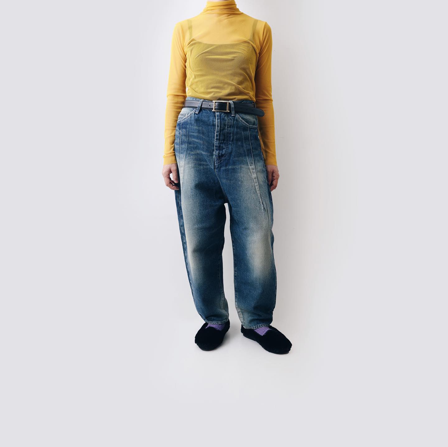 | 商品説明 | 新しいデザインのテーパードデニム。ジャストウエストで、股上が深く、腿周りにはゆとりがあり、裾にかけてすっきりとしたシルエット。フロントのタックに入ったステッチがポイントです。フロントはボタンフライで、ボタンにちょうちょの刻印がされています。バックポケットの内側にmermaidの刺繍柄を配し、手を差し入れた時、履き込むことで出てくるアタリに、刺繍の存在が感じられる仕様になっています。 いつまでも、風合いの変化を楽しみながら履き続けていただきたいデニムです。 |