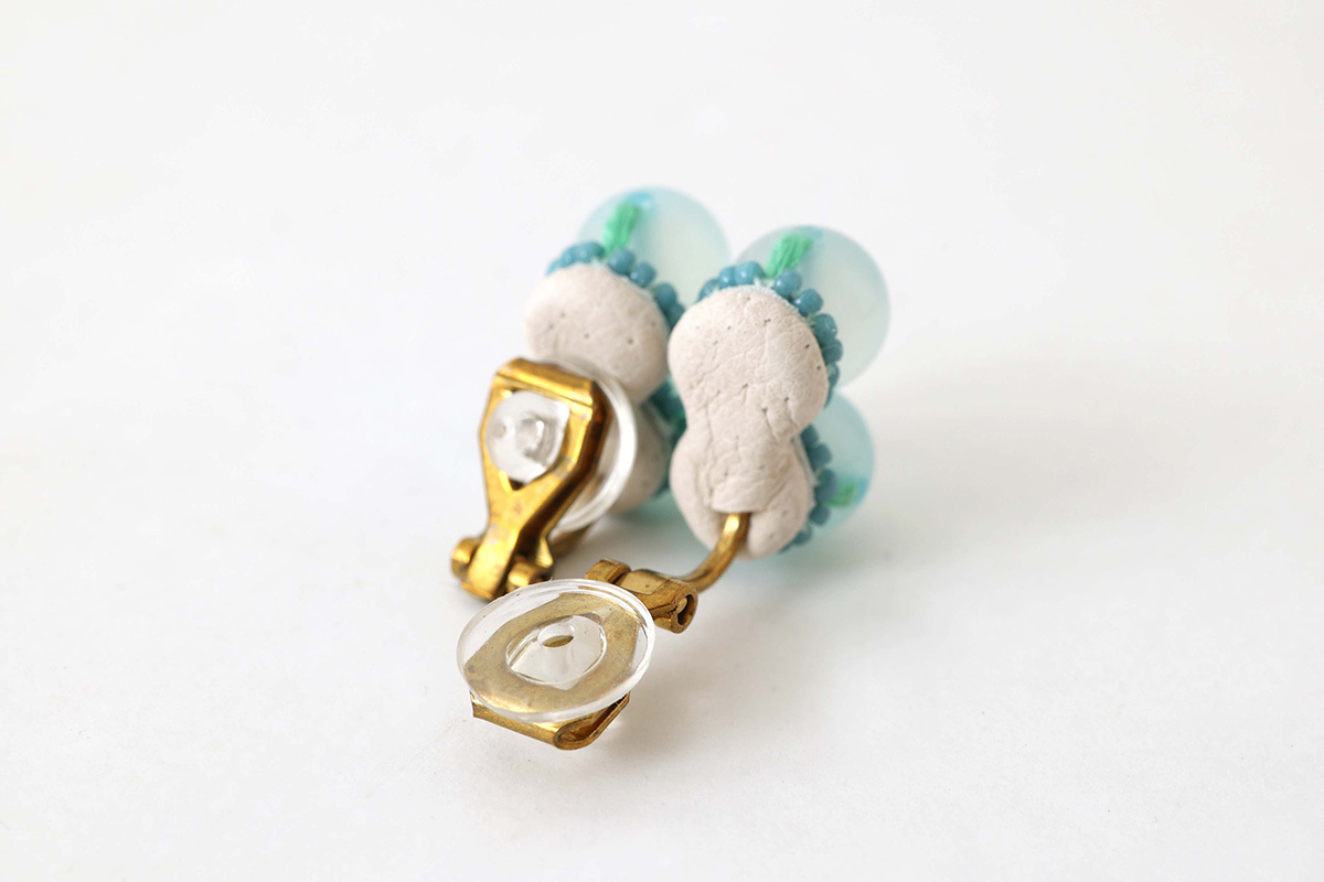 <Earrings> イヤリング金具:真鍮(フランス製) *金属アレルギーの方は 付属の樹脂カバーをご使用ください。