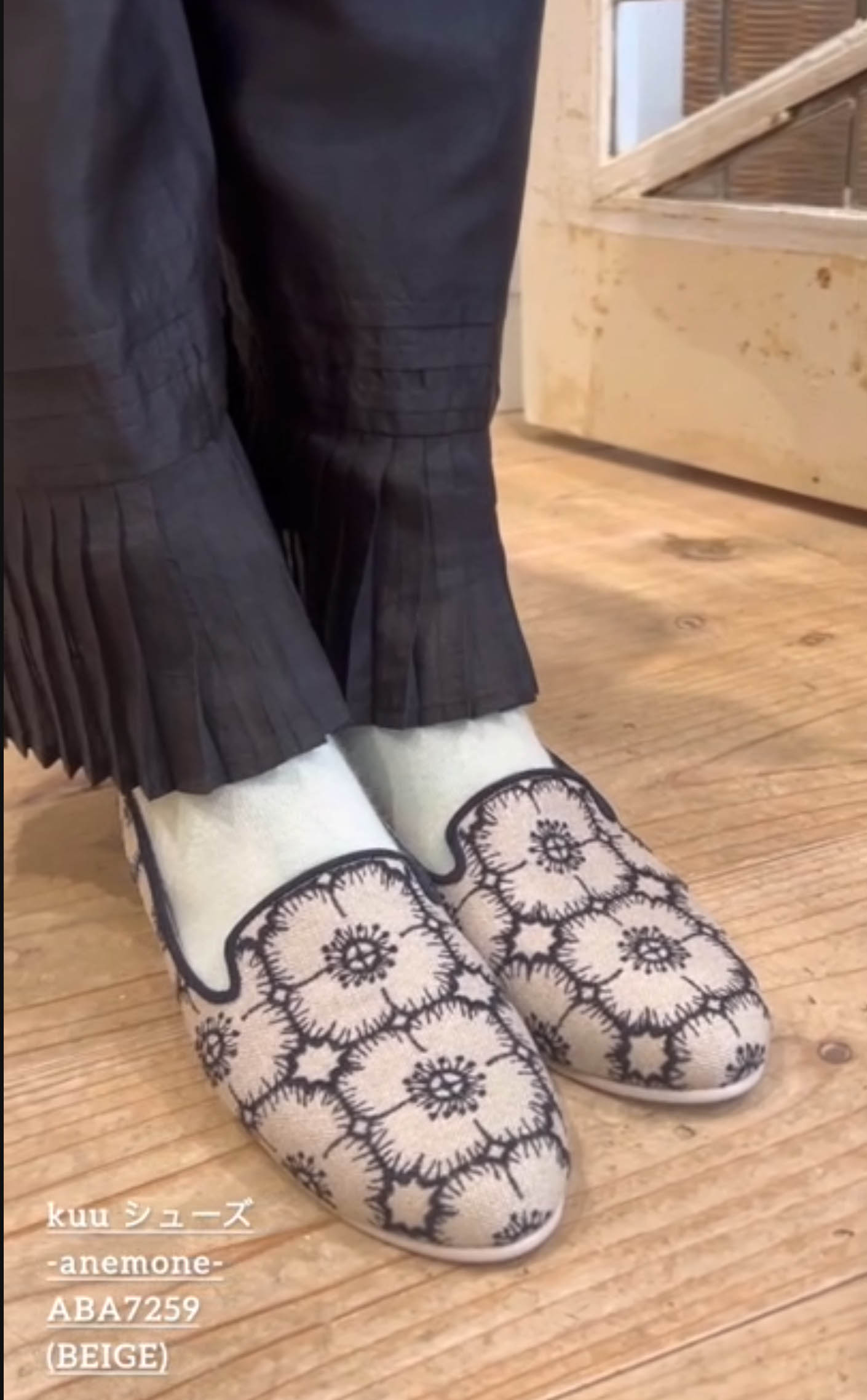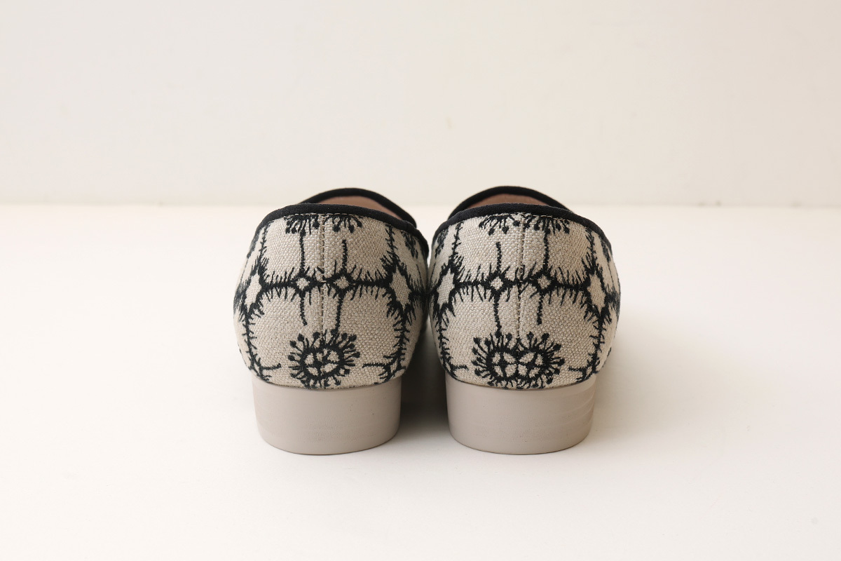 | 商品説明 | スリッポンタイプのシューズ“kuu”。2cmのヒールがあり、少しエレガントな雰囲気のコーディネートにも似合います。フィンランド語で月を意味する名前が付けられています。プレーンなデザインはコーディネートしていただきやすく、日常に馴染む一足です。 花の図案が連なって並ぶ刺繍のテキスタイル“anemone” 。具象的なモチーフでありながらミニマムなラインで表現された幾何学模様のように連続性のある図案です。装いのアクセントになるような華やかなシューズ。 |