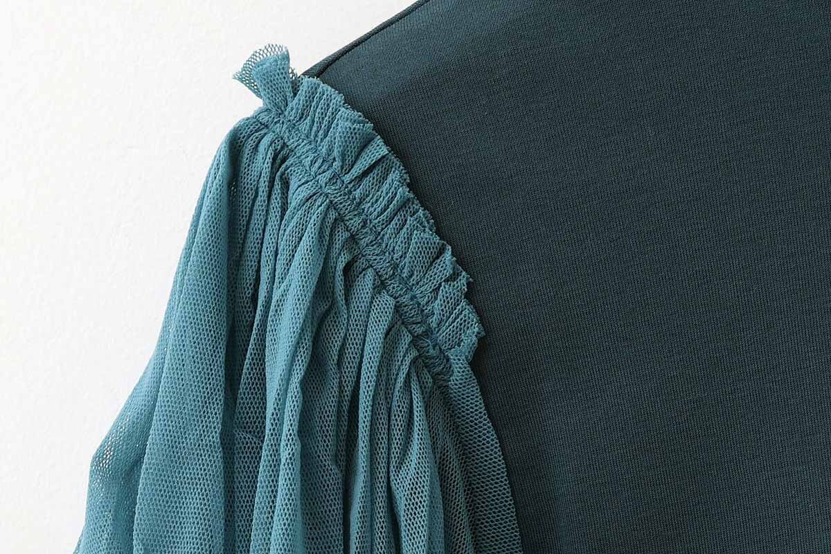 柔らかなチュールが重なったパフスリーブが特徴的なカットソー。なめらかな肌触りのコットン生地は着心地抜群です。バックの羽モチーフがポイントに。デニムとやシンプルなボトムとのコーディネートやノースリーブワンピースのレイヤードとしてもおすすめです。