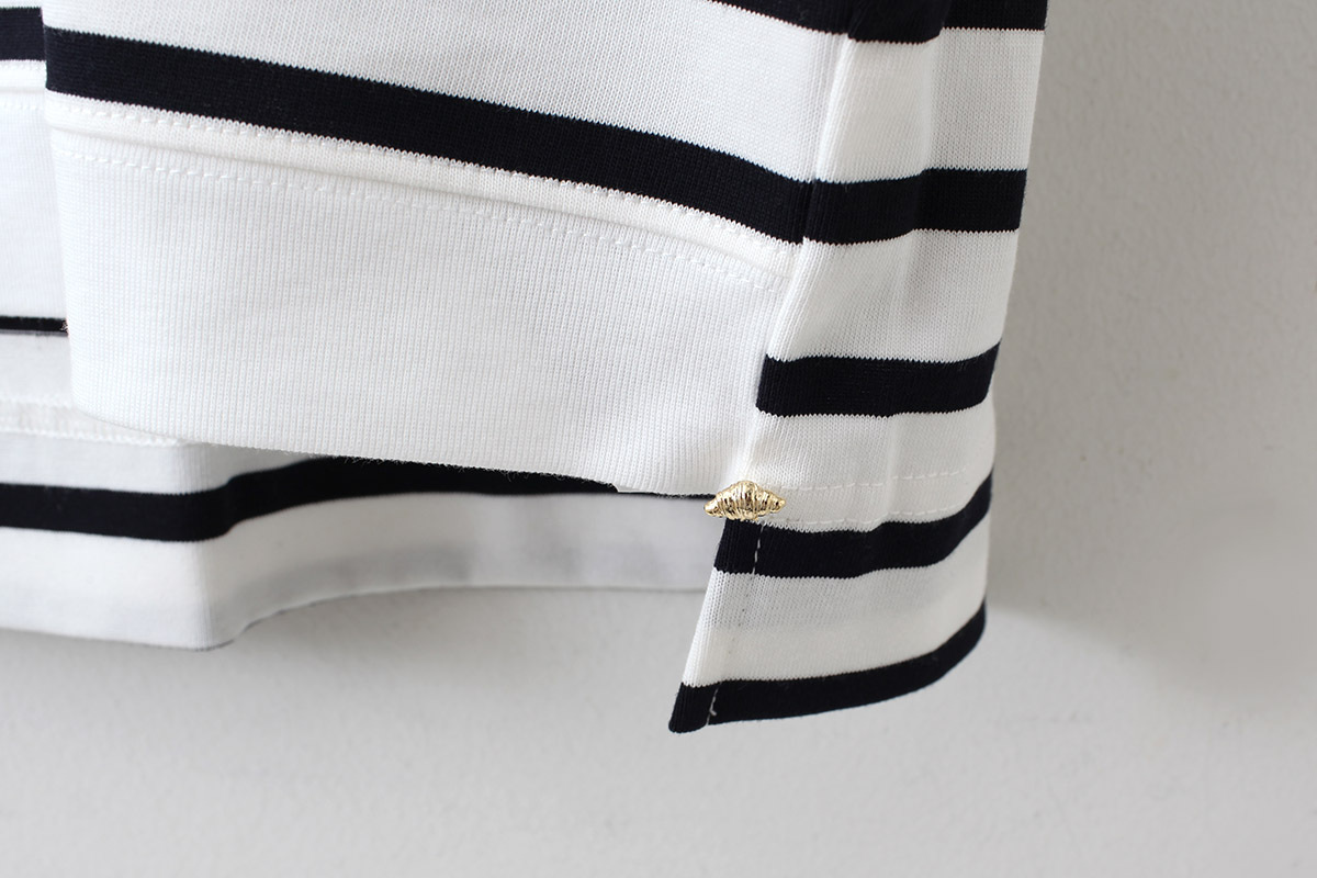 キメが細かく滑らかで毛羽が少なく光沢感があるのが特徴のジャージーで作られた、フレンチスリーブTシャツ。クルーネックの首元はできるだけタイトに仕上げられています。アームホールは大きく開いており、広巾のフライスが合わせてあります。襟がタイトで、袖、裾が緩い動きのあるコットンジャージーのシャツです。左の脇裾にテーマにちなんでのクロワッサンコインがついています。今シーズンは着丈が異なるMとLの2サイズ展開です。