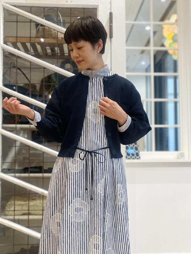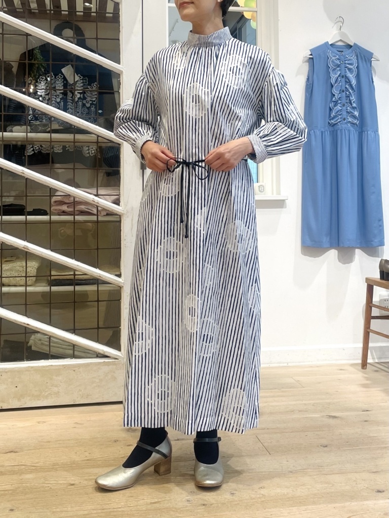 | 商品説明 | ストライプ柄の中に、おぼろげに花のフォルムが浮かび上がる“misty flower(ミスティー フラワー)”。ストライプのラインが途中で途切れたり、線の不均一な表情がデザインに独特のリズムを与えています。 経糸にシルク、緯糸にコットン糸を使用した生地にプリントをのせました。襟元にギャザーを寄せたスタンドカラーのドレスは、カフスを折り返したり伸ばしたり、着る人のスタイルに合わせて楽しめるデザイン。プリント地ならではの、軽やかでしなやかな風合いが魅力です。 |