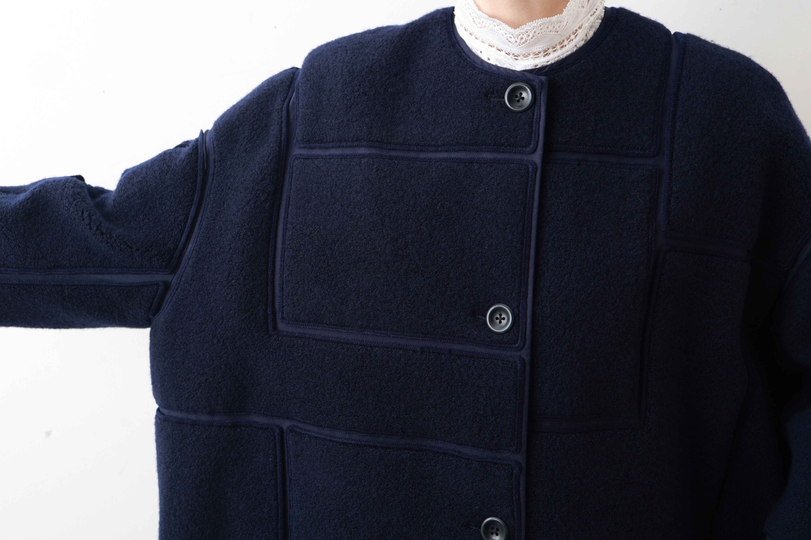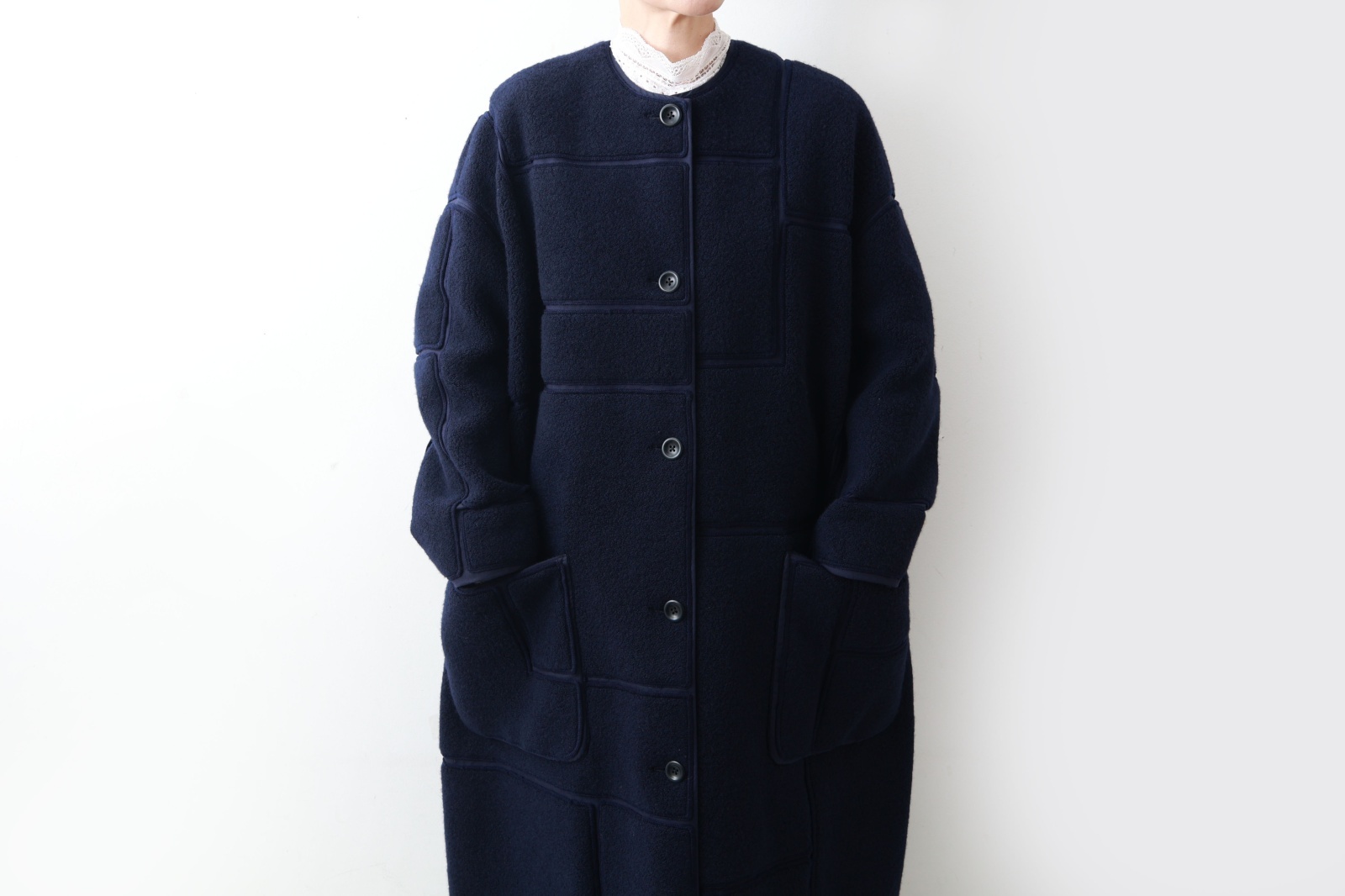 | 商品説明 | コットン地にオーストラリア産ラムウールを使用したボアをパッチワークのように糸で叩き、ムートンのような風合いに仕立てられた“sleep sheep(スリープ シープ)”のコート。不均一なボアの形や不規則な並びが織りなす、有機的で豊かな表情が魅力です。少しオーバーサイズに仕立て、ゆったりとしたシルエットでお召しいただけます。 |