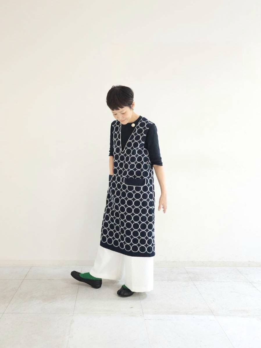 ブラックのマトラッセジャガードが上品な存在感を醸し出すパンツ。タックインすると現れるデザイン性のあるウエストシャーリング。足のラインをストンときれいに覆うので、体型カバーが叶い、かつリラックスした着用感でデイリー使いにもお出かけにも最適です。ホームクリーニング可。