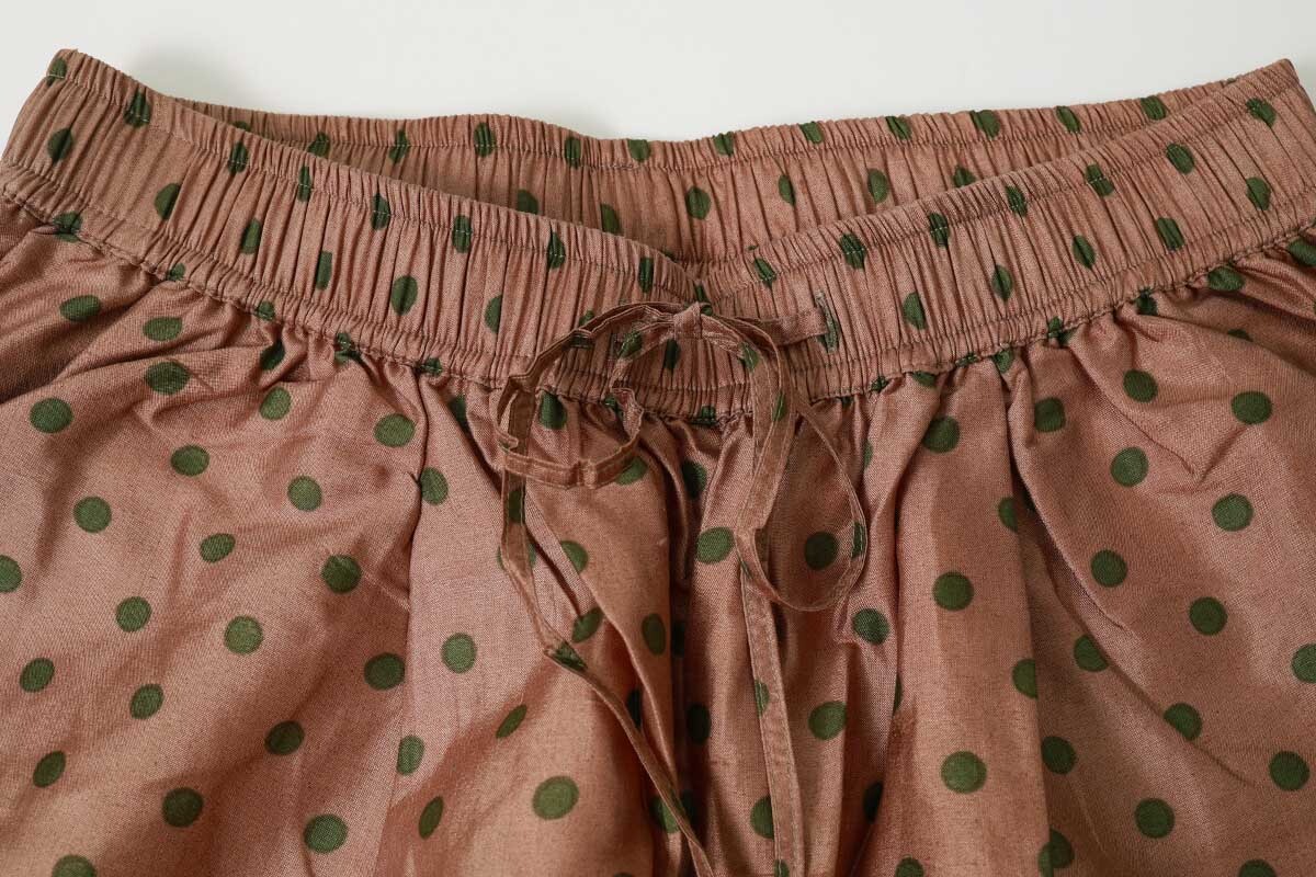 Khadi Silk Polka dots Print Tuck Pants (C.BR) [BUNON]