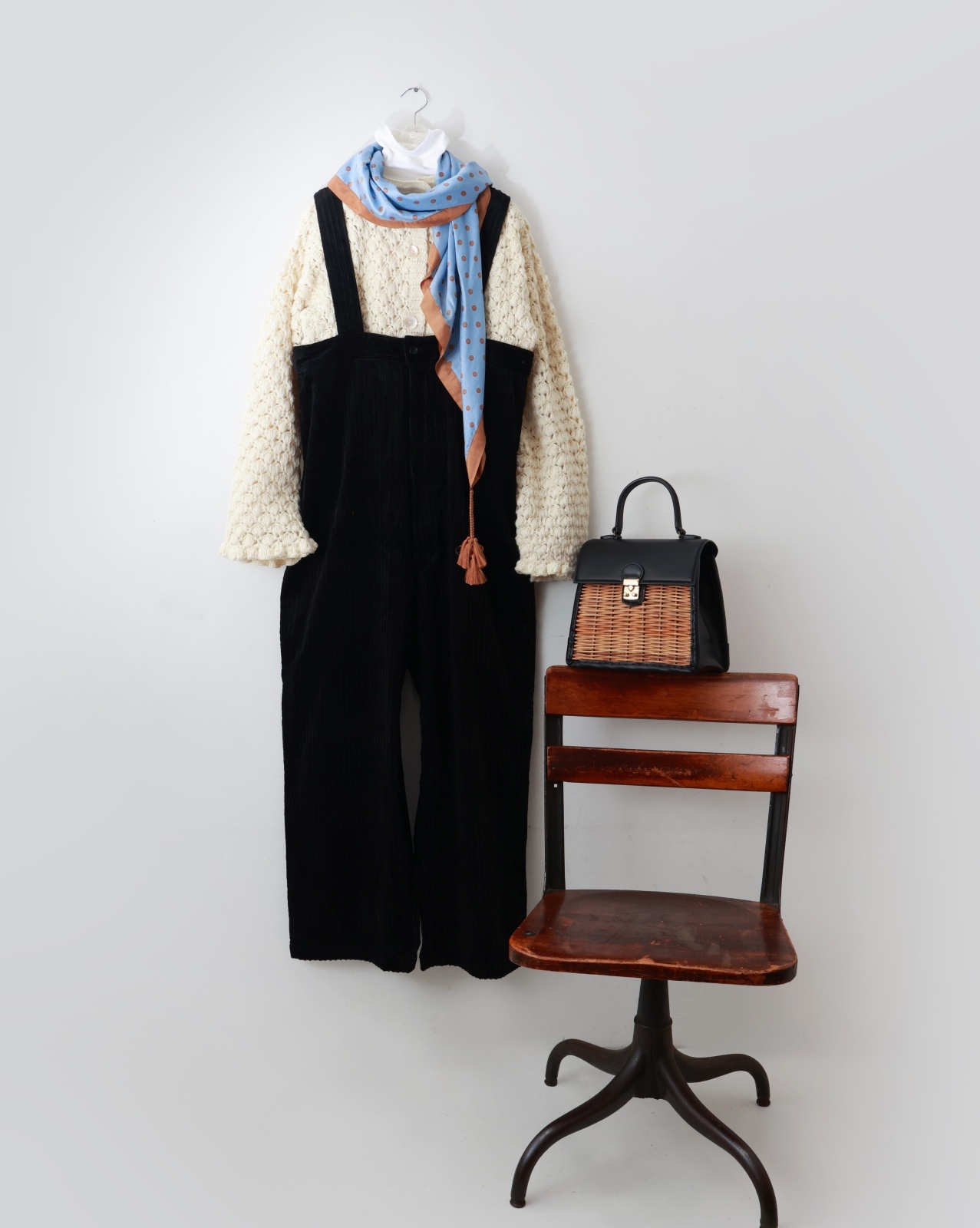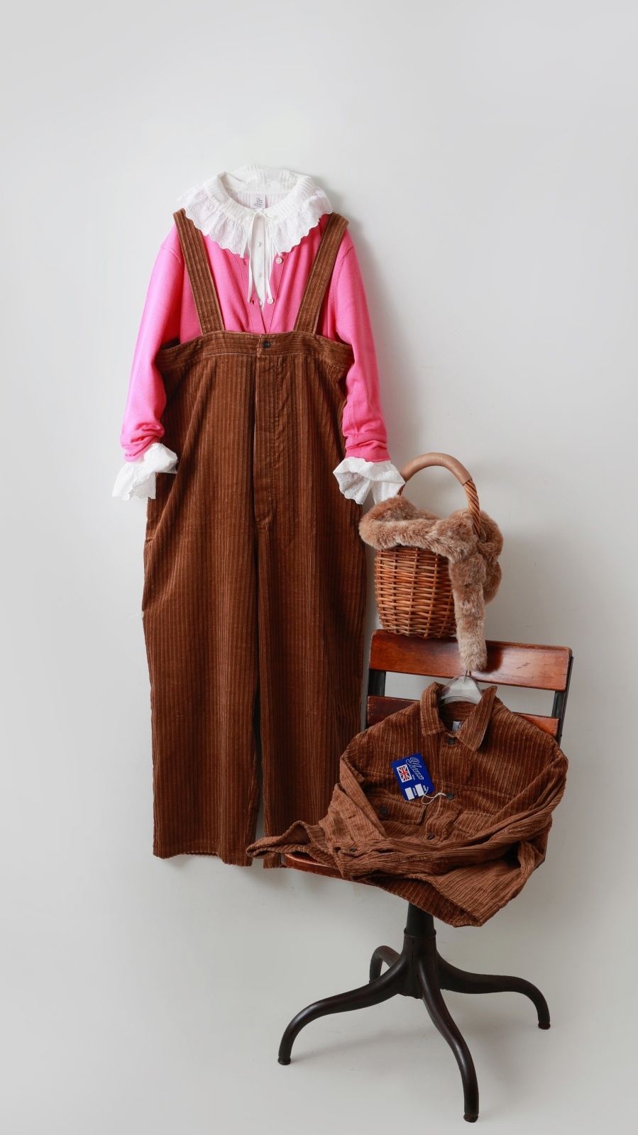 Yarmoで好評のハイライズストラップパンツ。太畝コーデュロイを使用。ストラップで2段階に長さ調整可能。後ろ中心ゴムを採用。ブラウスやニットとレイヤードを楽しんでお召しいただけます。
