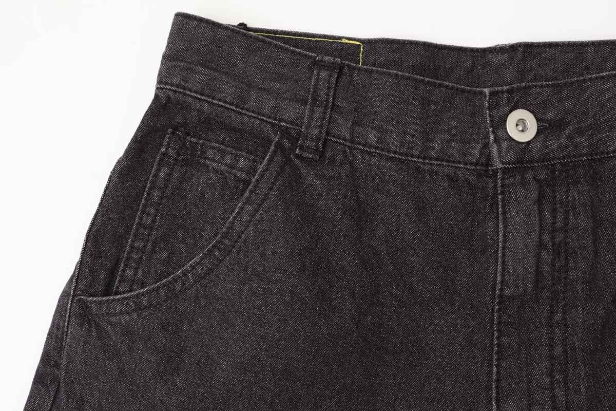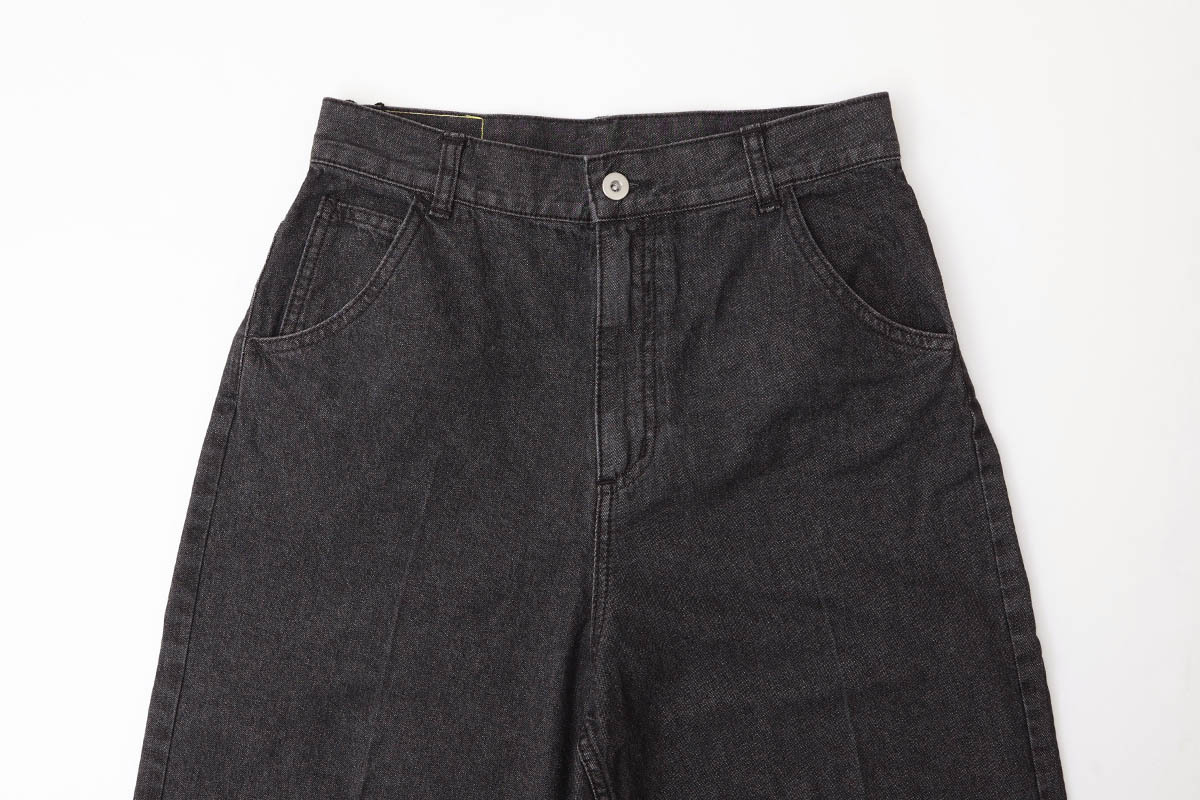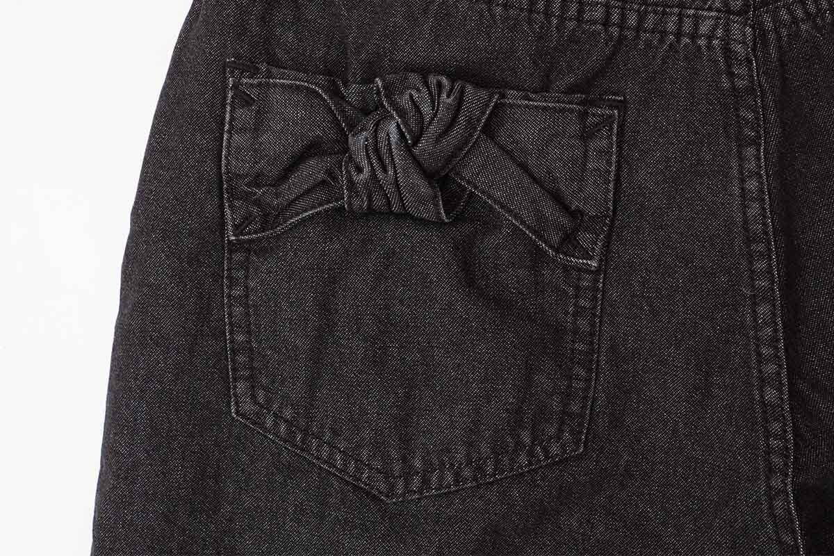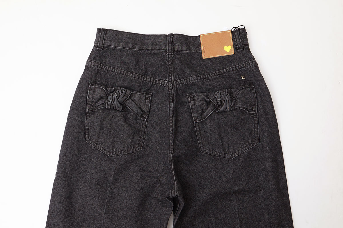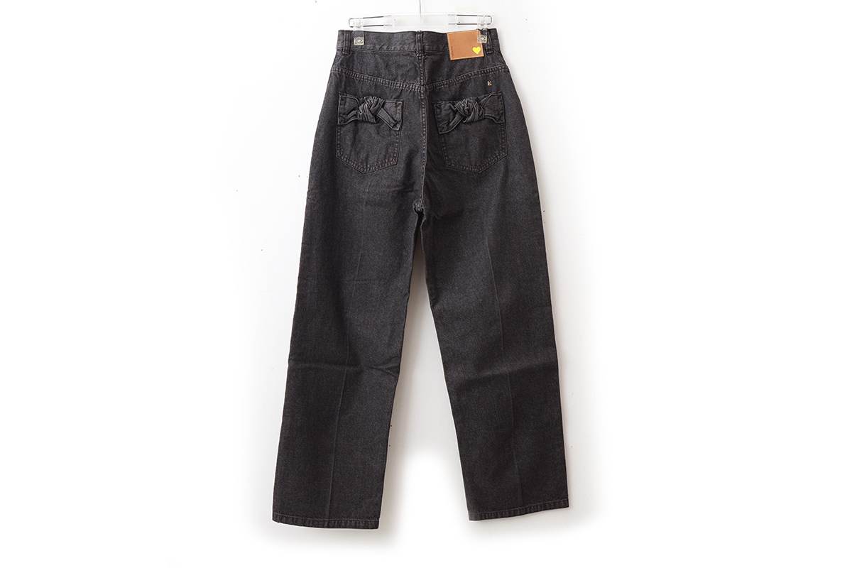 センタープレスでスッキリと履いていただけるデニムパンツ。センタープレス部分に洗いがかけられていることで、より立体的なシルエットに仕上げられています。リボンのバックポケットがポイント。