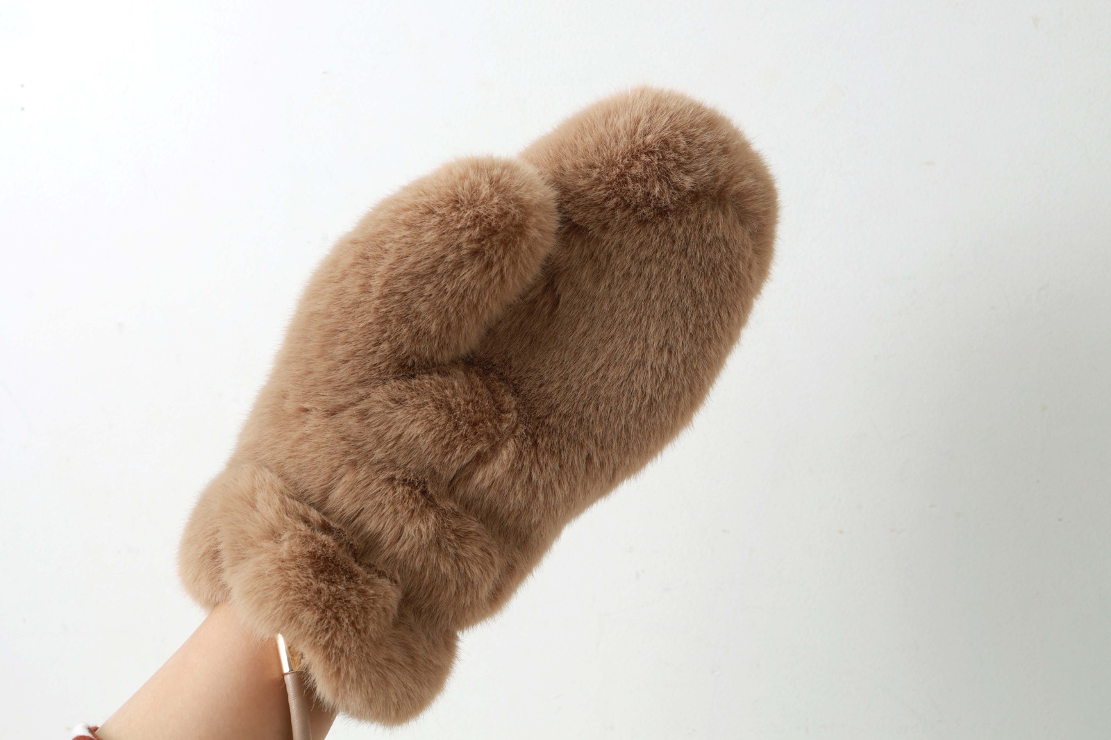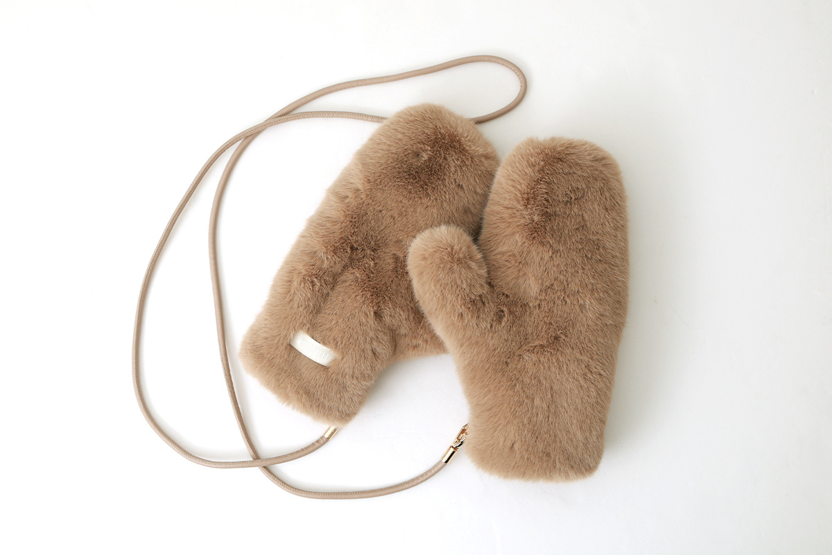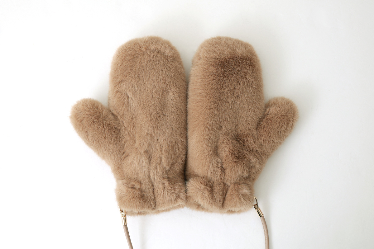 商品説明 | ボリュームたっぷりエコファーのミトン。内側はボアになっており、リバーシブルでお使いいただけます。紐は取り外し可。 |