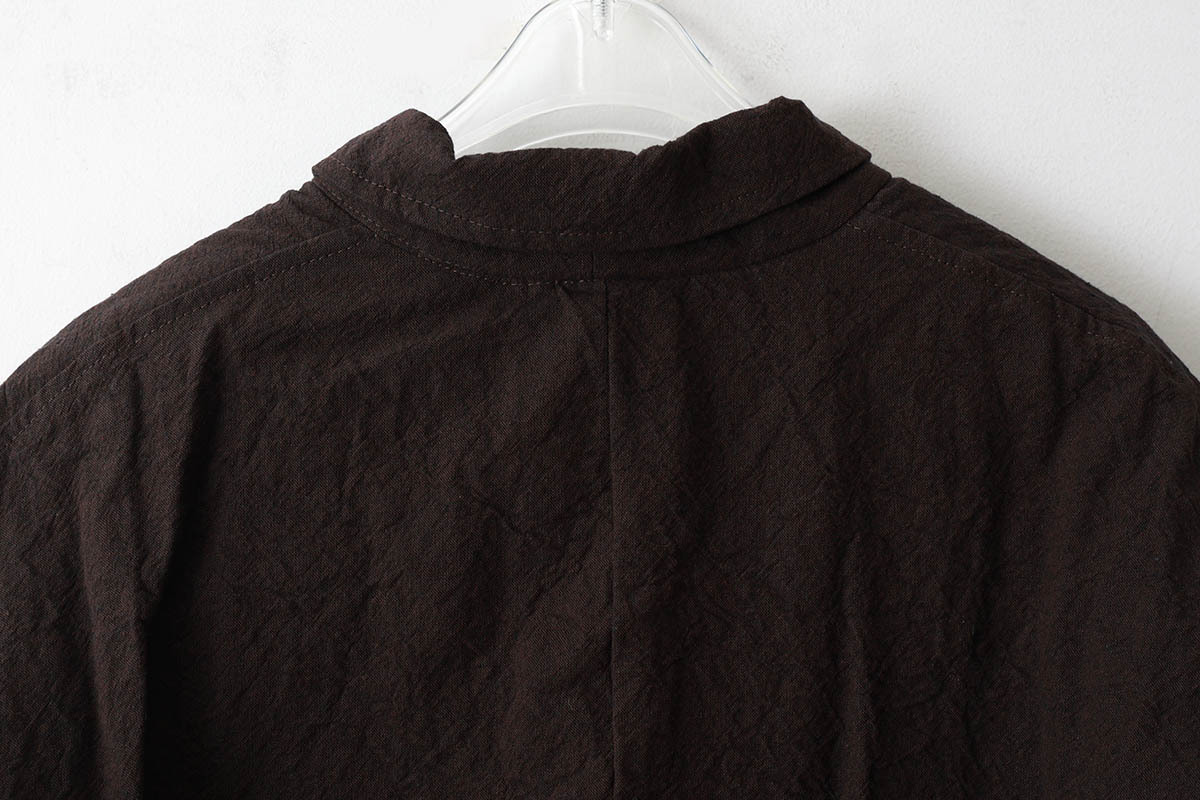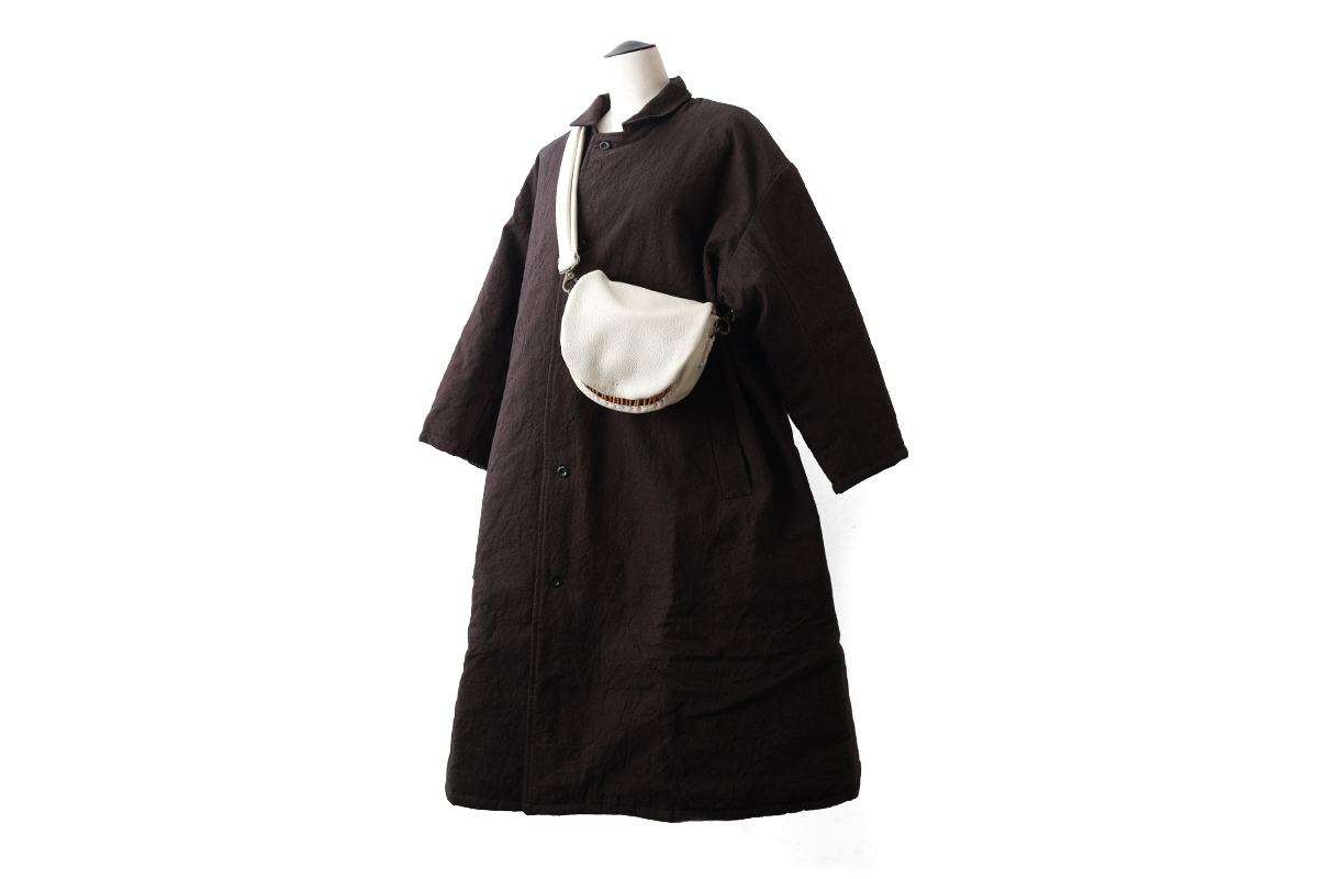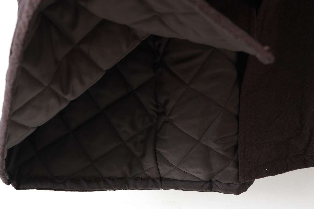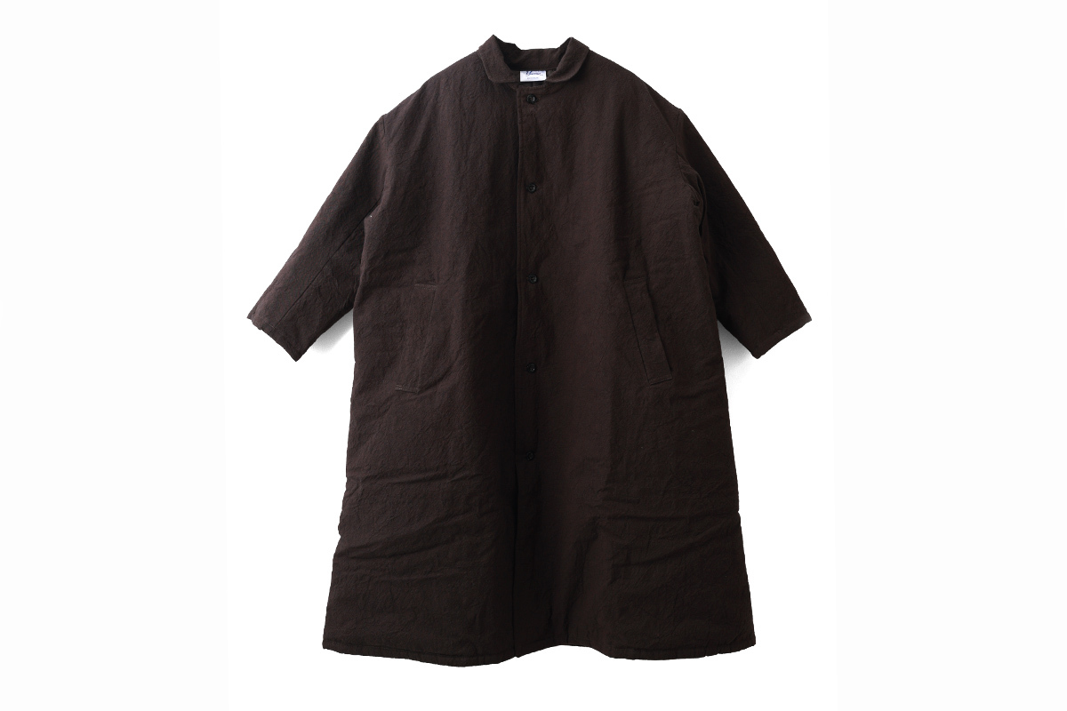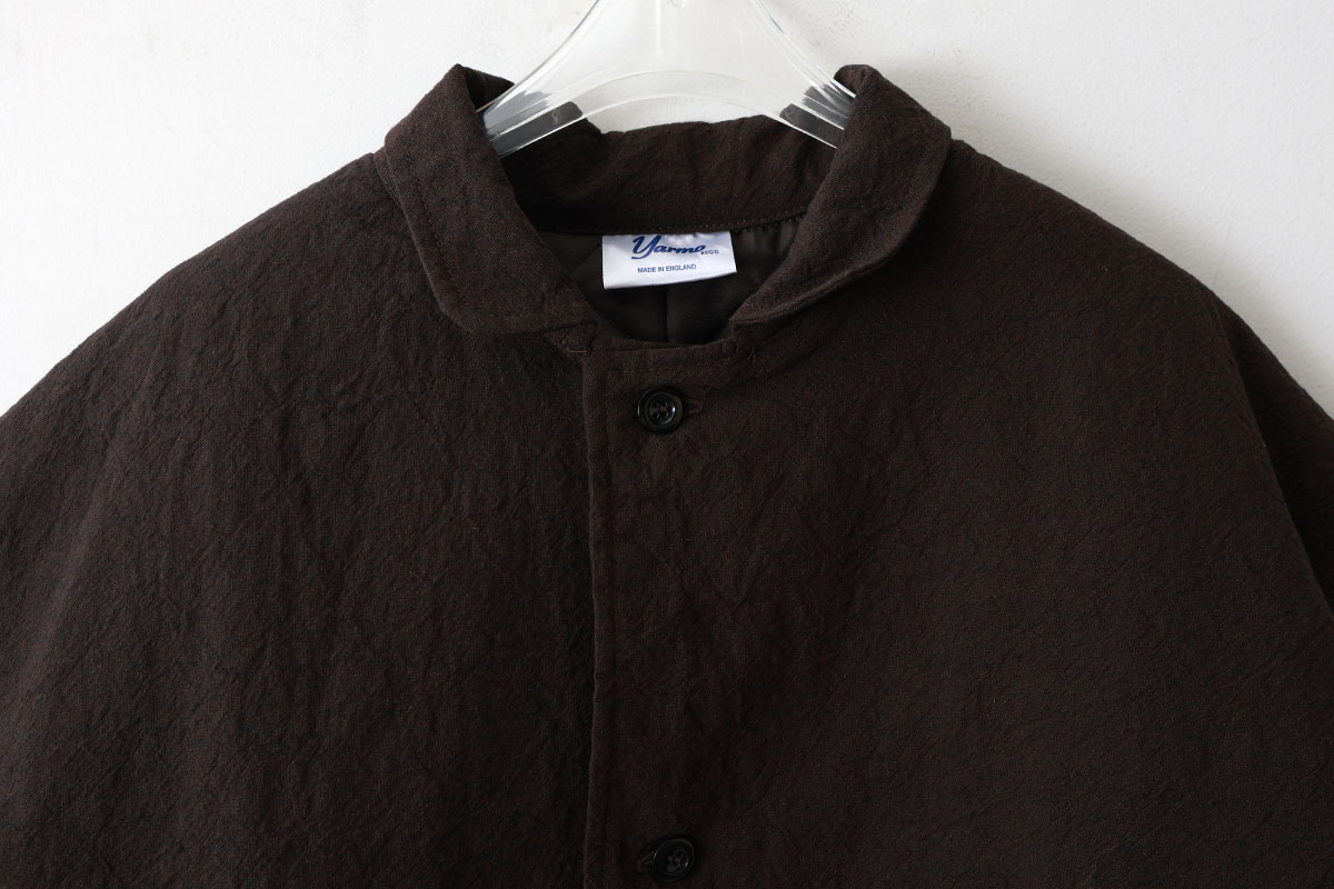 Yarmo秋冬の定番のQuilting Lab Coat。 表地にはナチュラルな表情のハリ感のある綿麻素材を、裏には艶感のあるキルティングが使用されています。