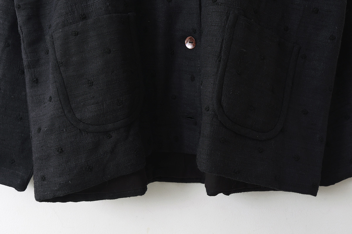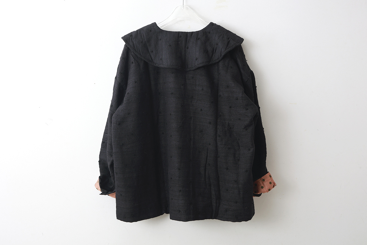 Khadi Thick Silk & Embroidery Round Collar Blouson (BK) [BUNON]