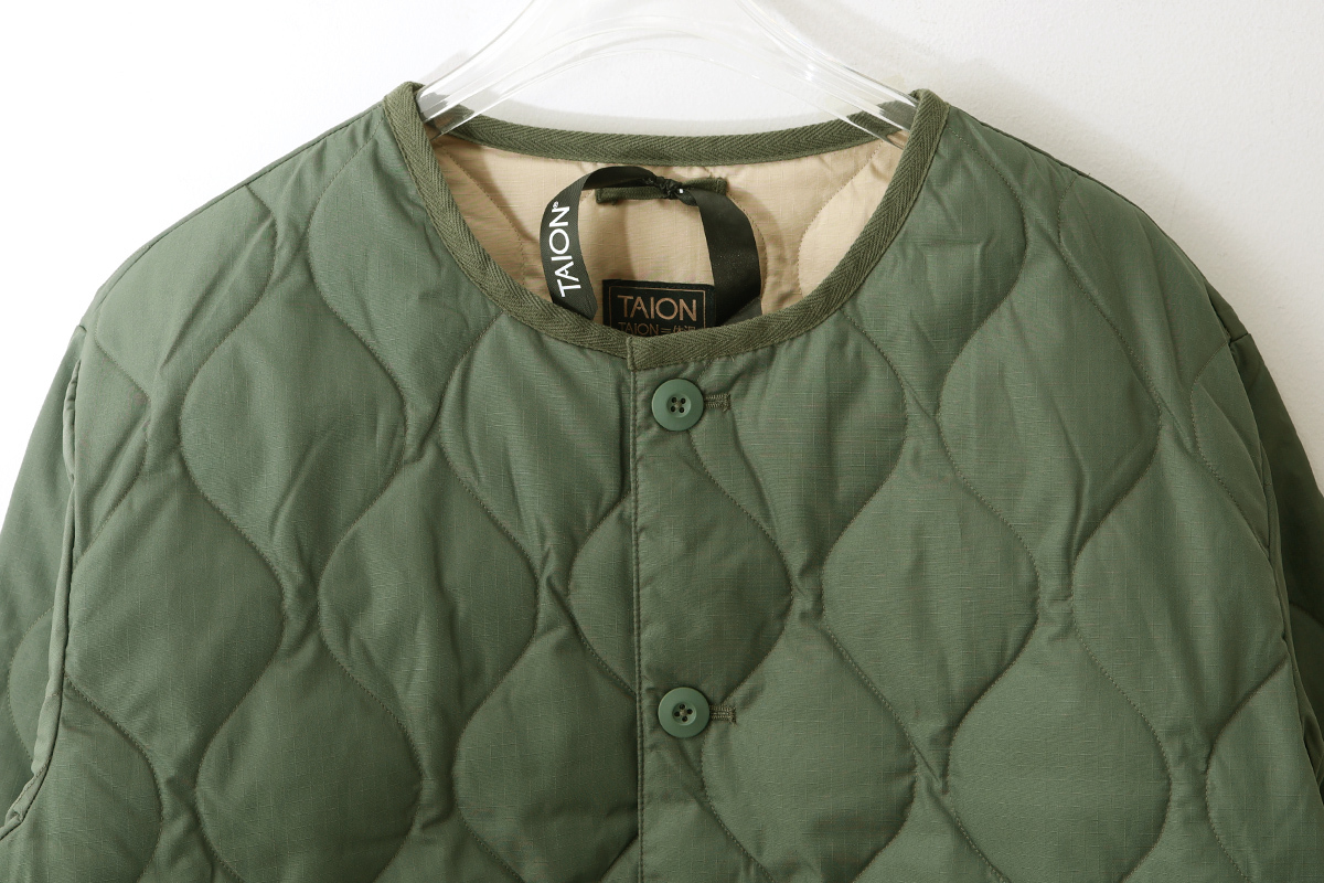 "カーディガン感覚でゆったり着られる、ミリタリーダウンジャケット"